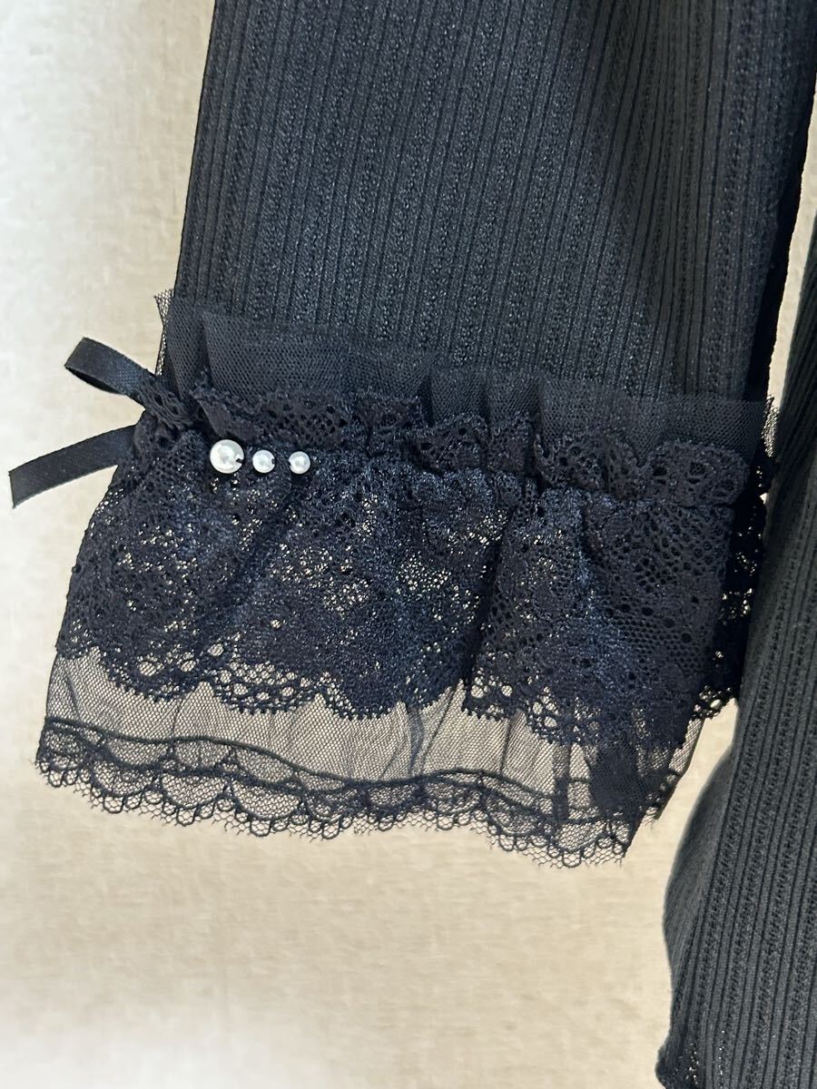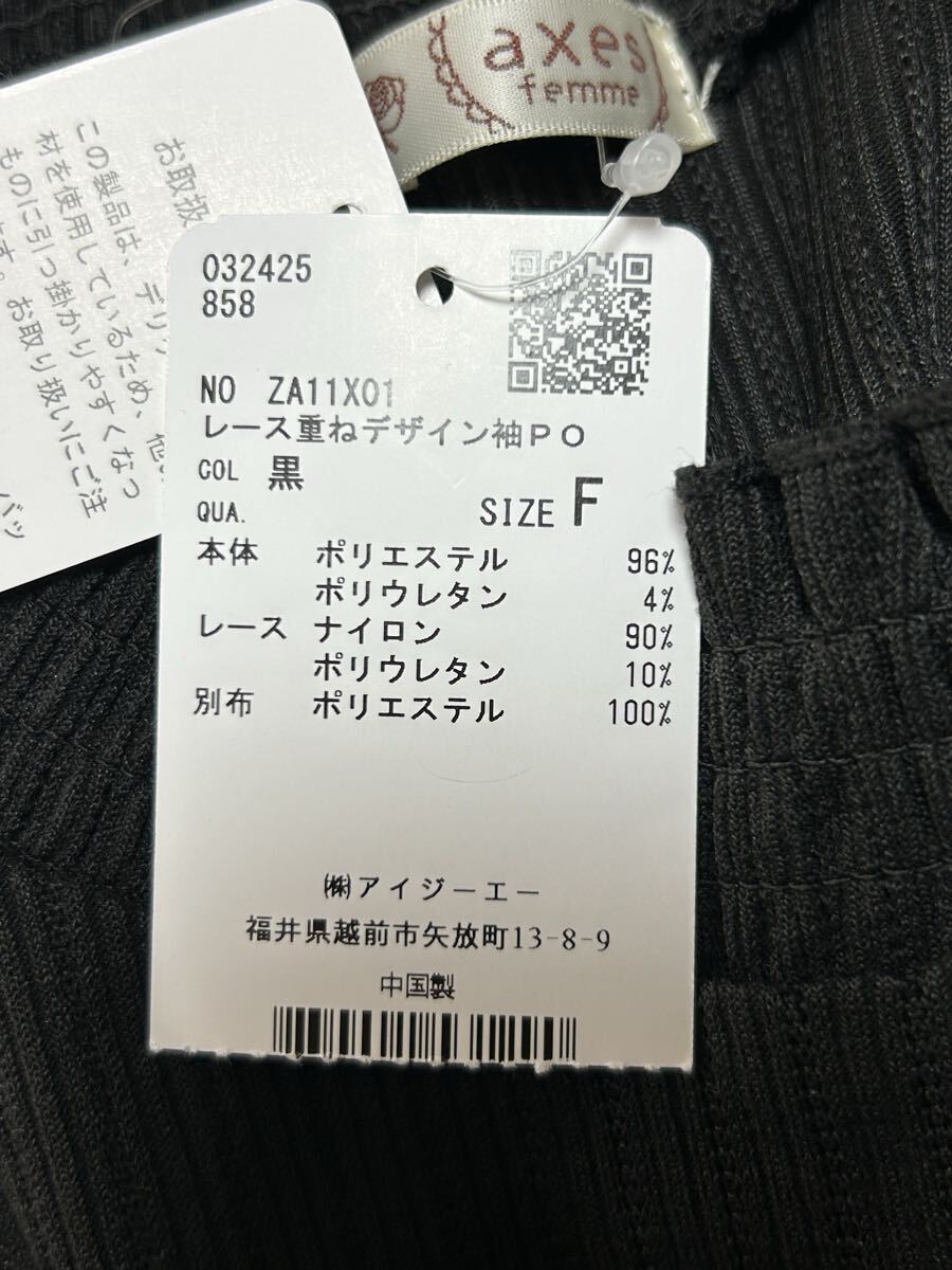 タグ付き【axes femme ★アクシーズファム】袖口レース重ねデザイン・リブカットソー・ブラック・Fサイズ 收藏