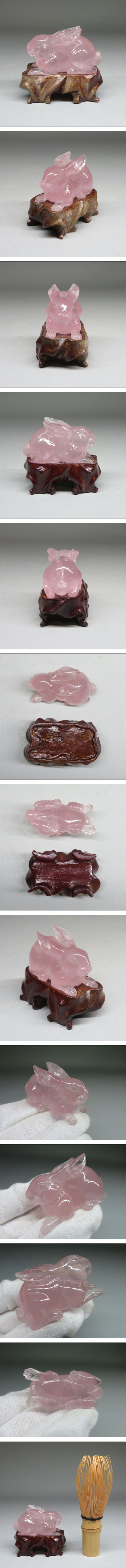 【東】唐物 碧玉 天然石 水晶兔 うさぎ 置物 唐木台付 中国美術/古美術・骨董品 | |||||||
