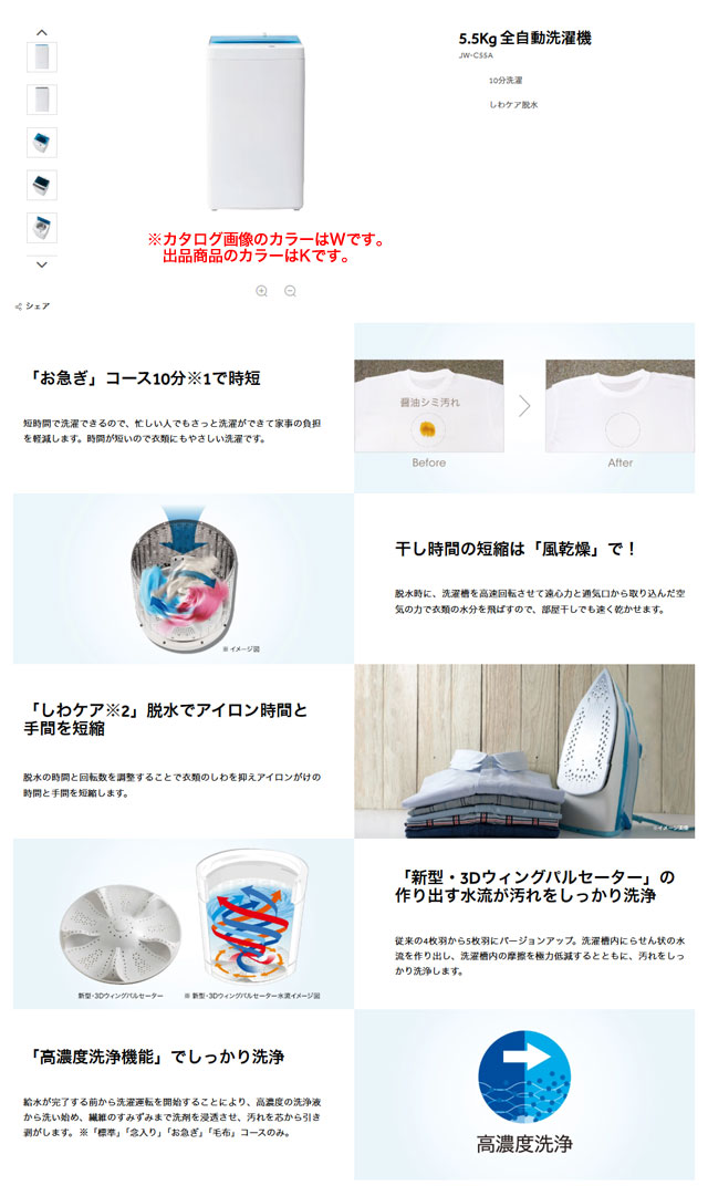| メーカー・型式 | ハイアール / JW-C55A(K) | |