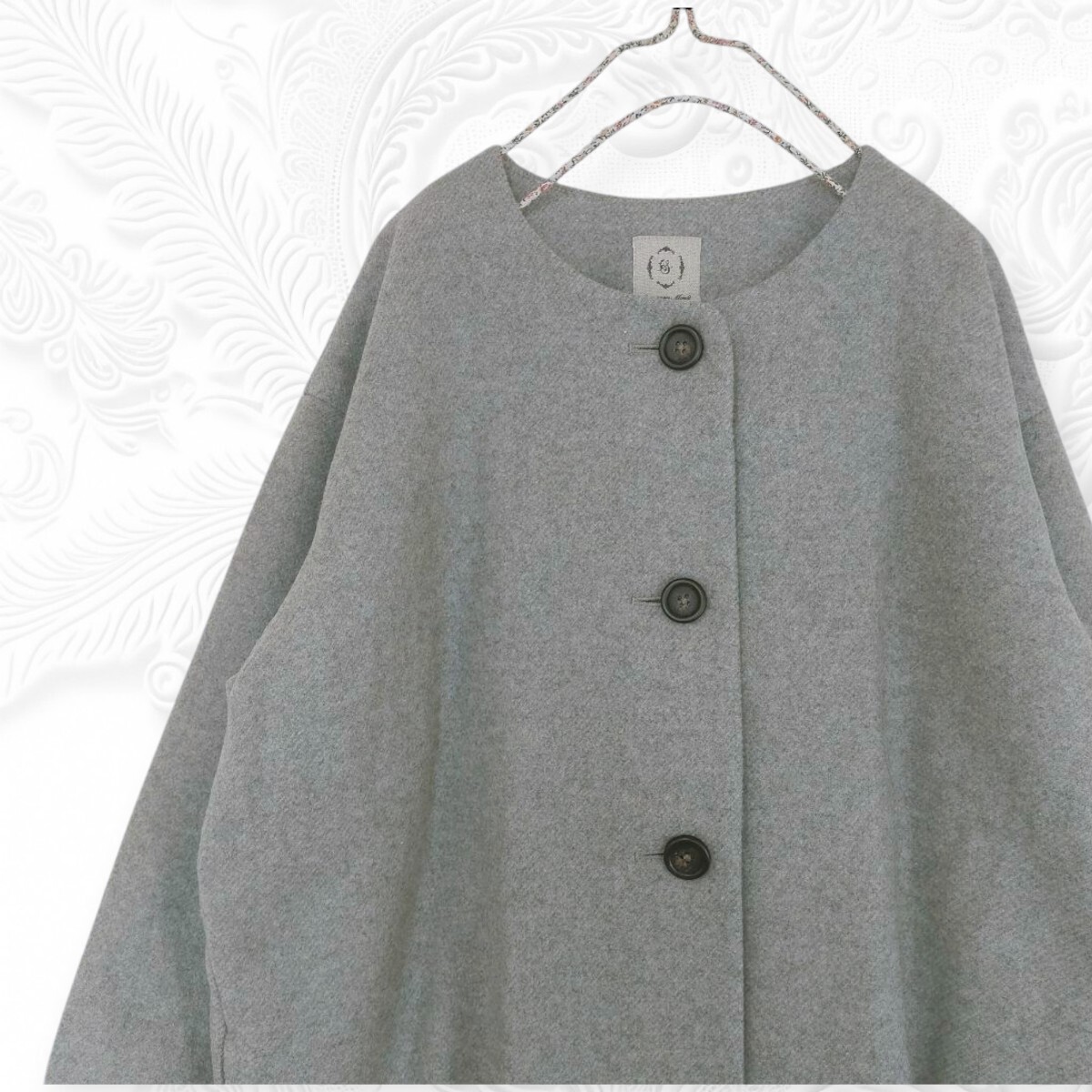 新品 Samansa Mos2 サマンサモスモス ノーカラーコート グレー レディース 秋冬 きれいめナチュラル 收藏