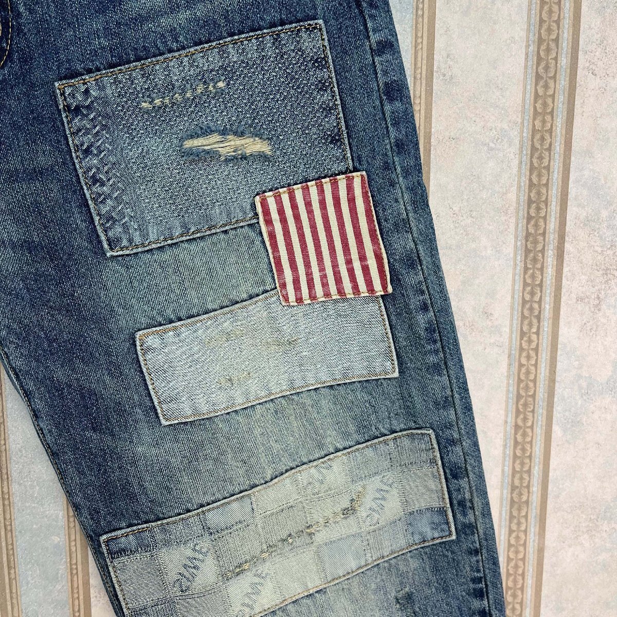 ヴィンテージ風で個性的なパッチワークデニムパンツです。