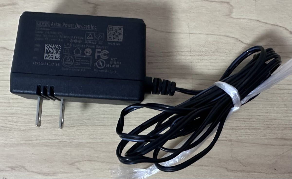 * BUFFALO INC.のロゴマークがあり、純正品の電源アダプターです。