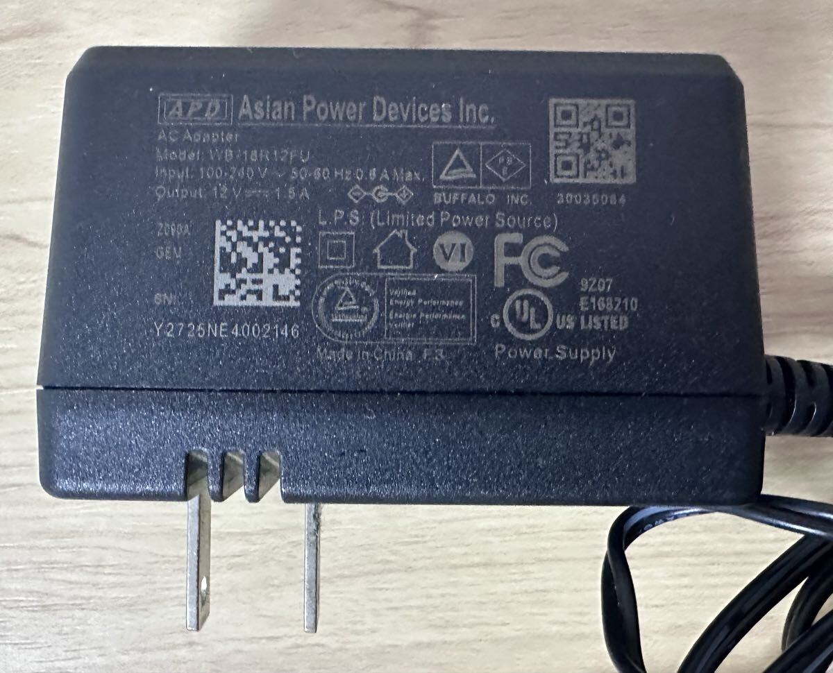 BUFFALO 純正 ACアダプター APD WB-18R12FU DC12V 1.5A WSR-300/WSR-1800など 無線ルーター用 電源