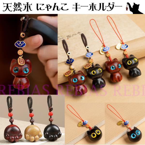 送料無料 【猫の手ブラック】 天然木 にゃんこ キーホルダー 猫 黒猫 ストラップ 猫の手 肉球 開運 CAT 招き猫 收藏