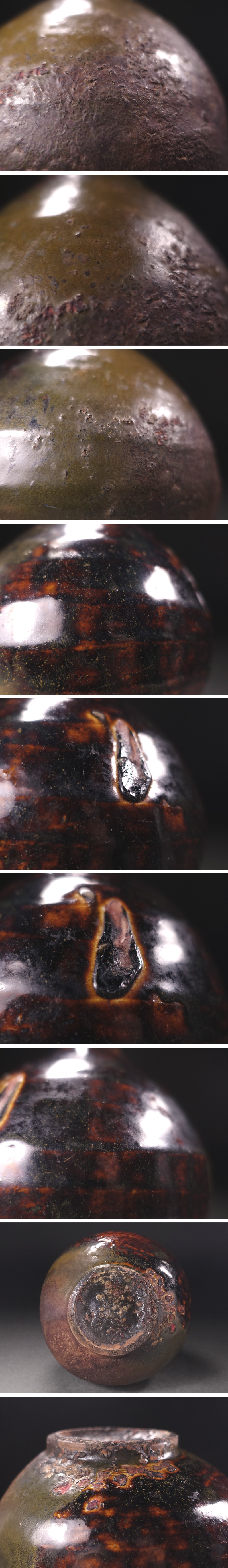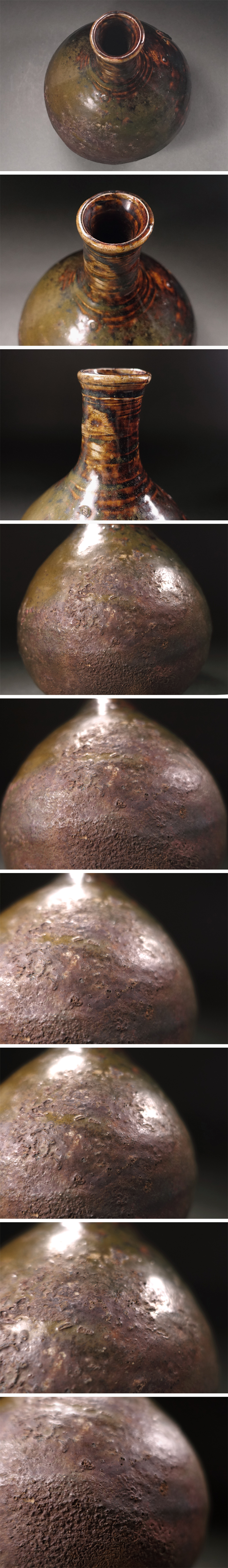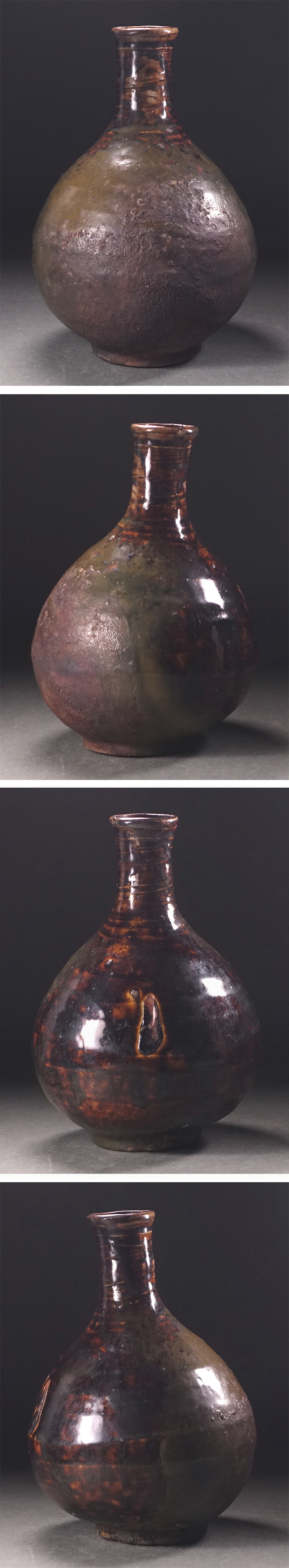 ∇花∇江戸時代 黒唐津徳利 朝鮮唐津徳利 片身替わり風の秀逸な釉景色 收藏