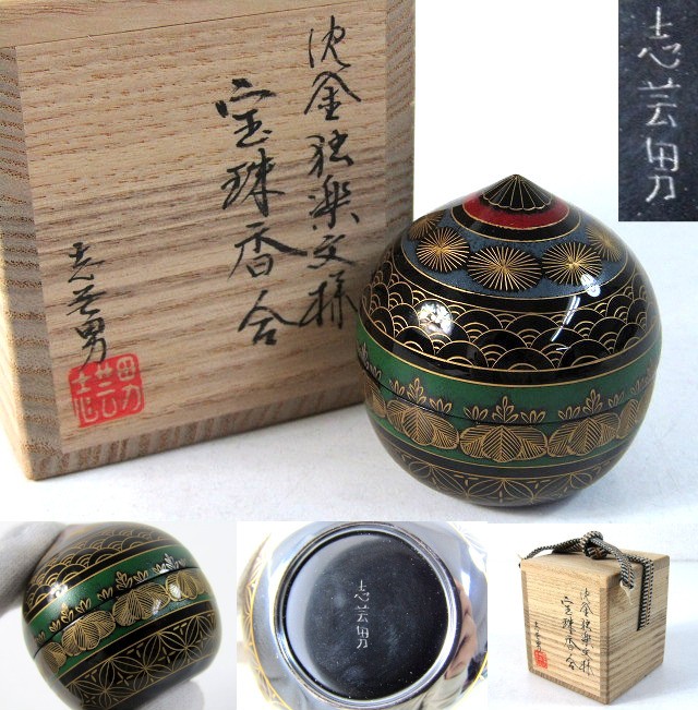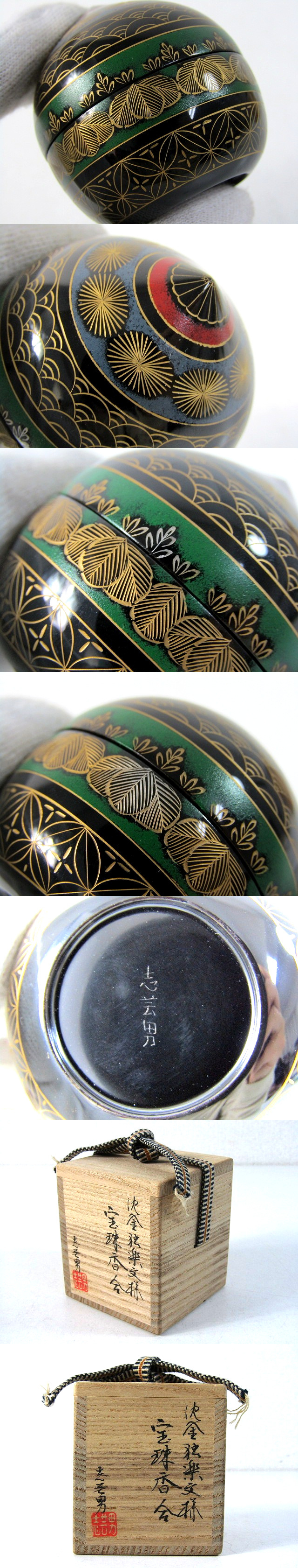 志芸男 作 沈金独楽文様 宝珠香合 共箱 美品【説明欄に詳細写真有り】の出品です。