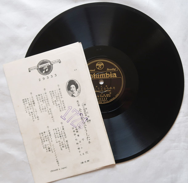 「SP盤『愛馬の別れ/音丸、それからそうしたネ/豆千代』歌詞有」です。盤の状態は経年の小スレ、小傷等見られますが特に気になる程ではないと思います。SP盤は以前にコレクターの方から出来れば視聴はしないでほしいと頼まれた事がありそれ以降は特に気になった部分以外は視聴しておりませんのでご了承お願いいたします。
