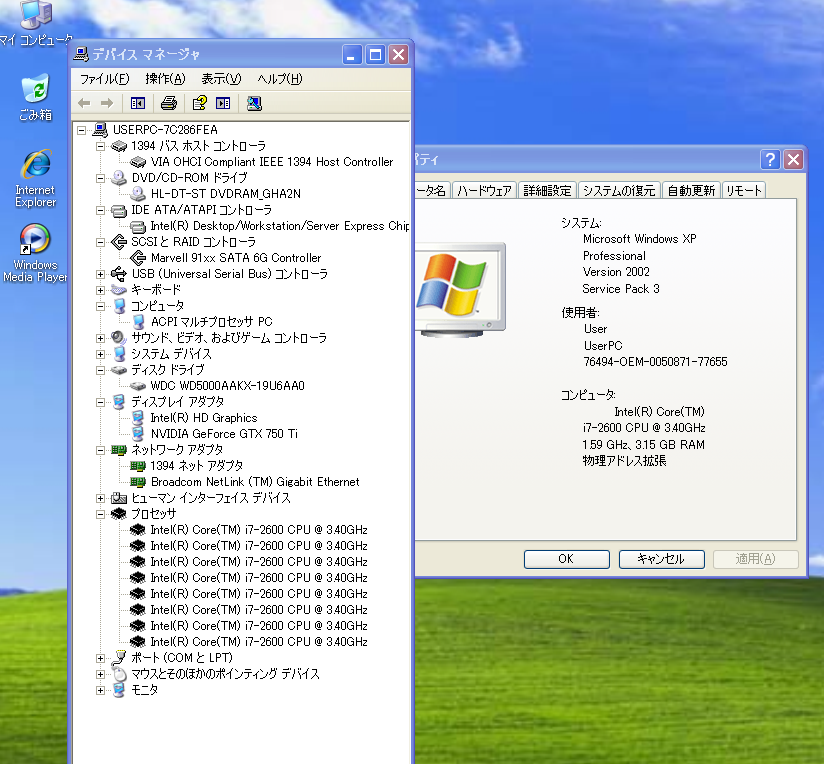 | CPU | Intel Core i7-2600 / 3.40GHz, 4コア |