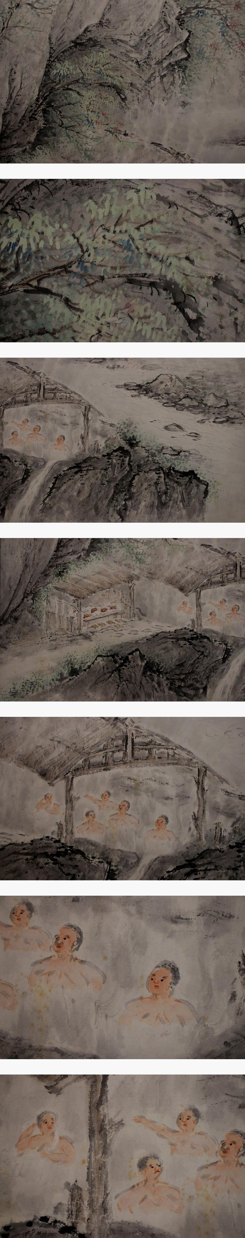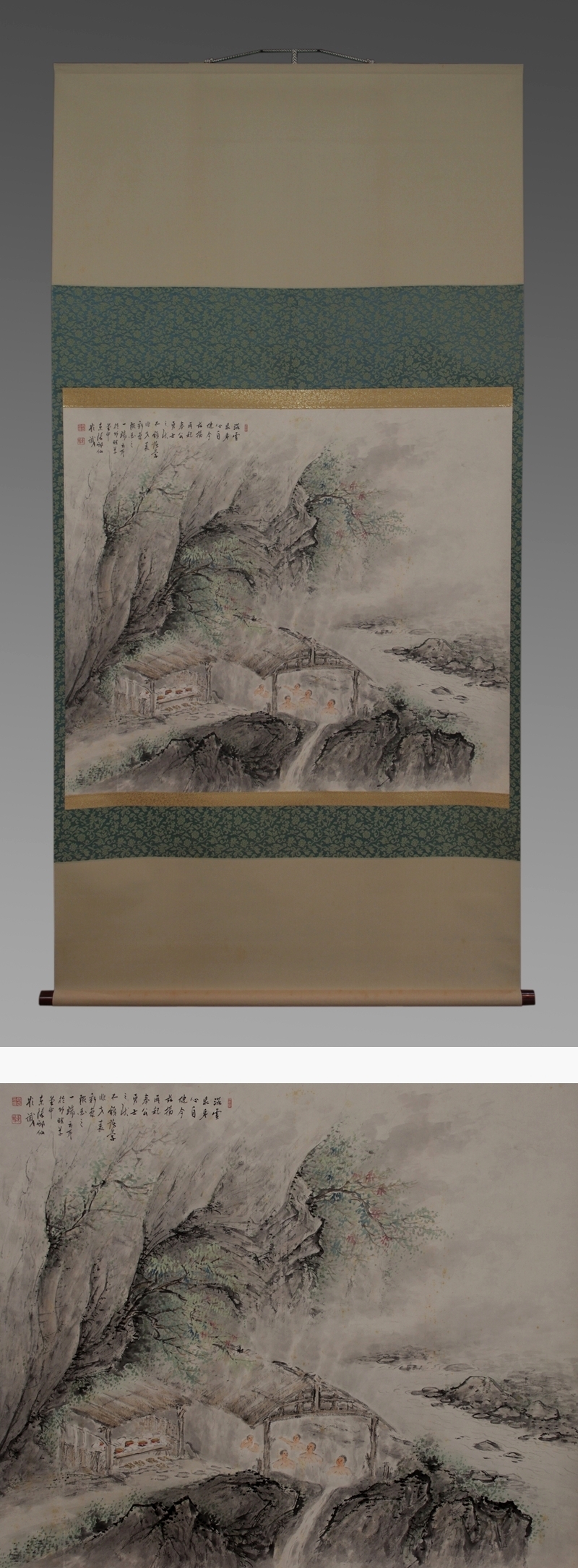 | №2508031 珍品【模写】越智東豫【大幅・露天湯之図】◆紙本◆合箱◆掛軸 | |