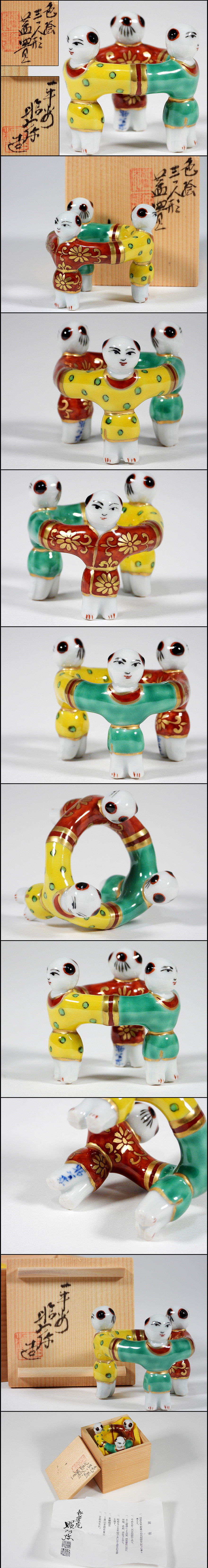 【騰立】 平安 昭阿弥造 色絵 三人形 蓋置 共箱 煎茶道具■A861-18 收藏