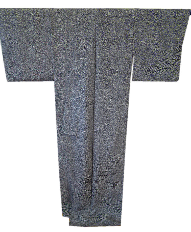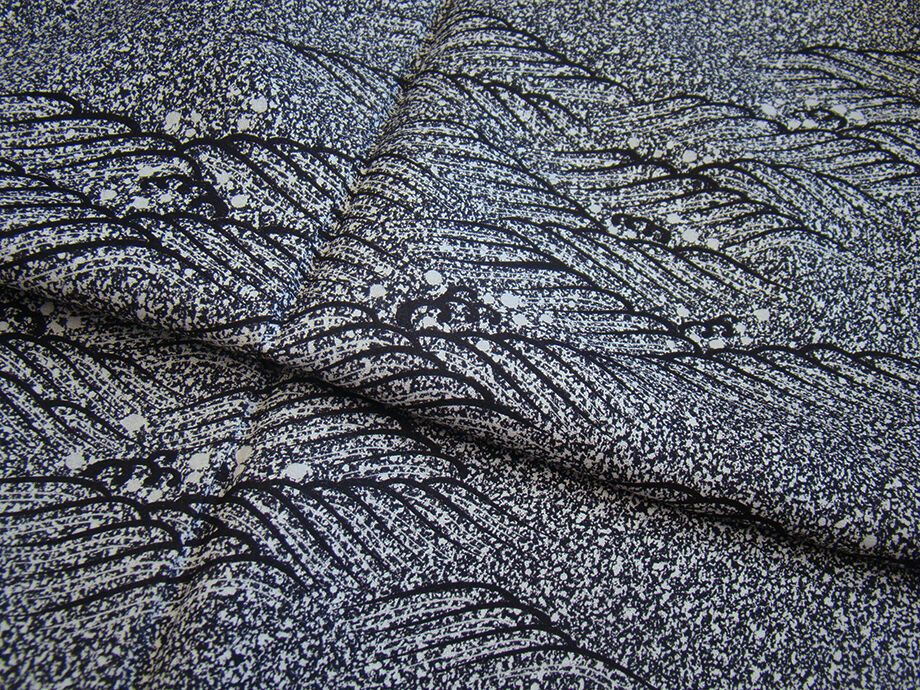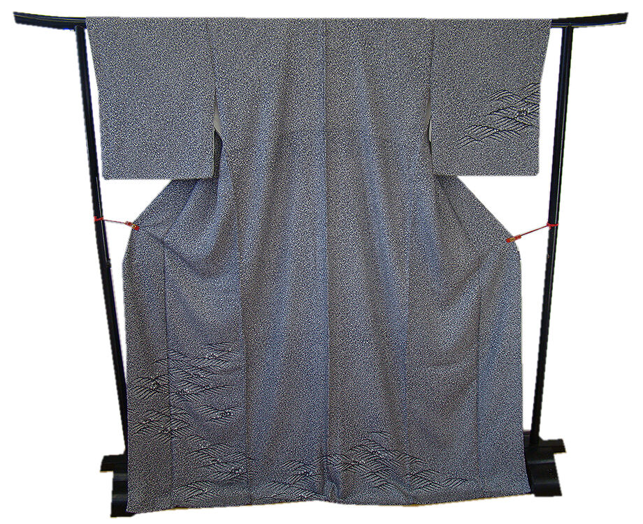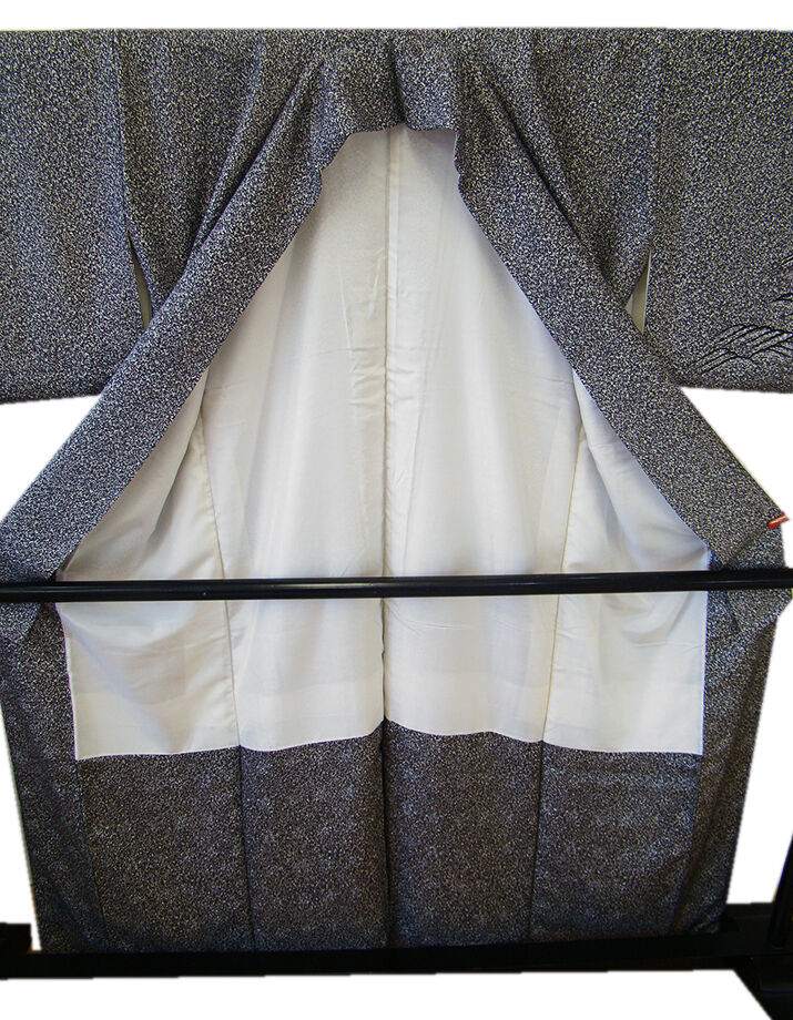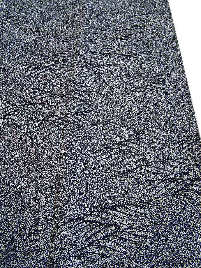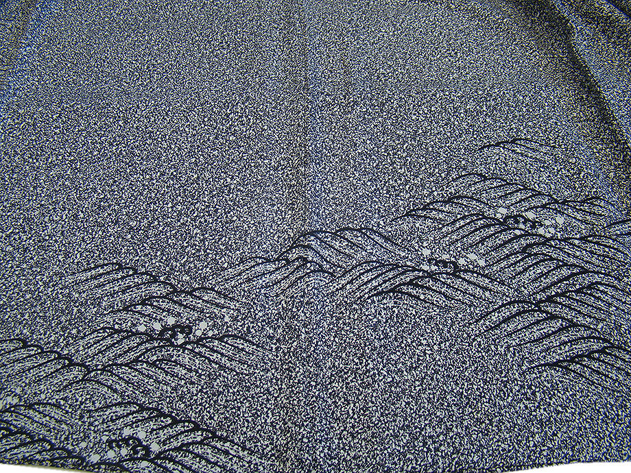 | 商品説明 | こちらのお品は「袷」ですので10月から5月までお召頂ければと思います。 とてもしなやかで柔らかな滑らかな手触りの着心地良い一越地の生地、 黒と灰白色のたたき染に波柄の染柄、 共八掛(正絹)、幅広い年代の方にお召し頂けます。 |