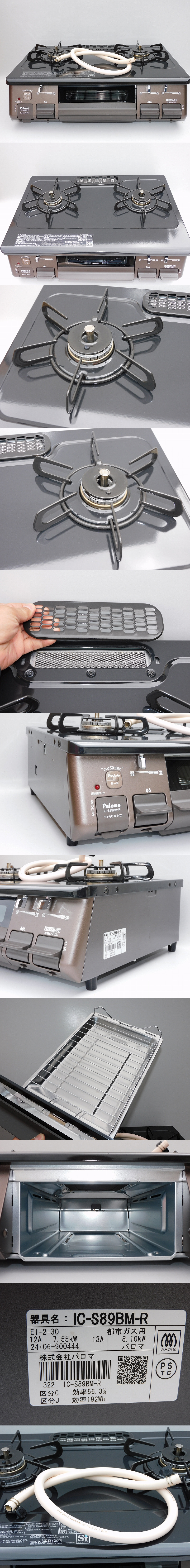 【f1490/ほとんど使っておらず美品/正常動作品/送料無料】パロマ ガスコンロ IC-S89BM-R 2024年 都市ガス 中古 ホース付 押しボタン 綺麗 收藏