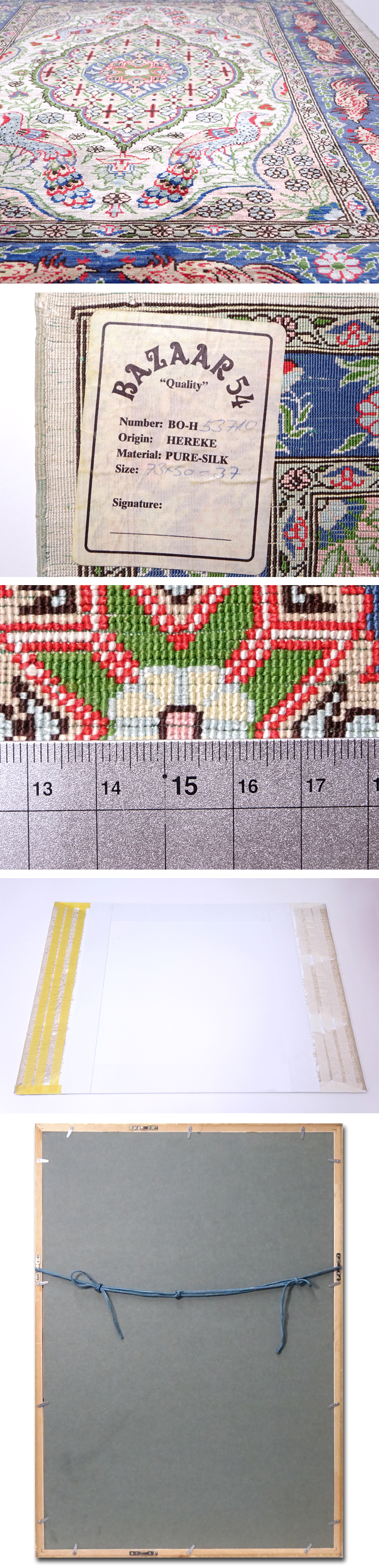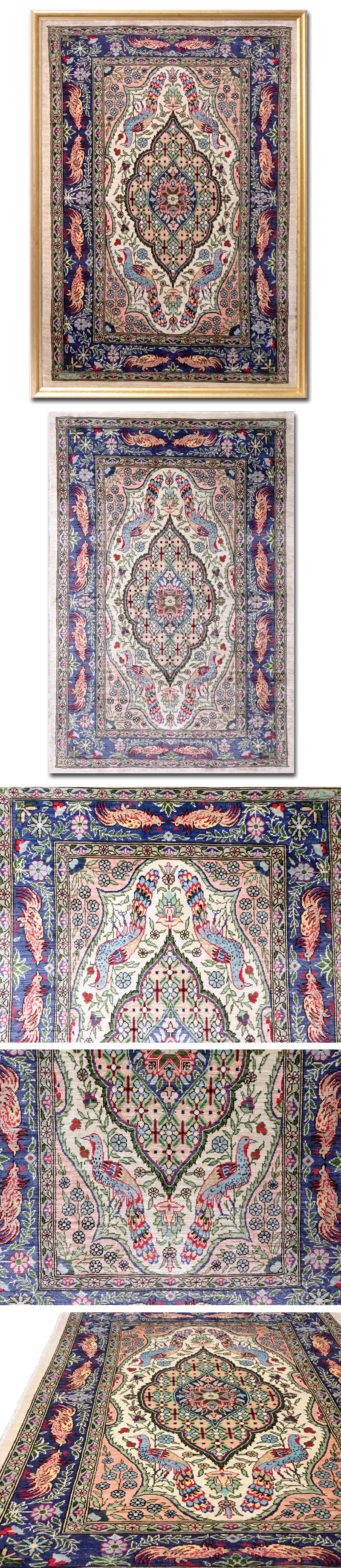 慶應◆最高級トルコ絨毯 ヘレケ産 シルク100%総手織 花鳥図 額装 76.5×53㎝ 絨毯専門店購入品 收藏