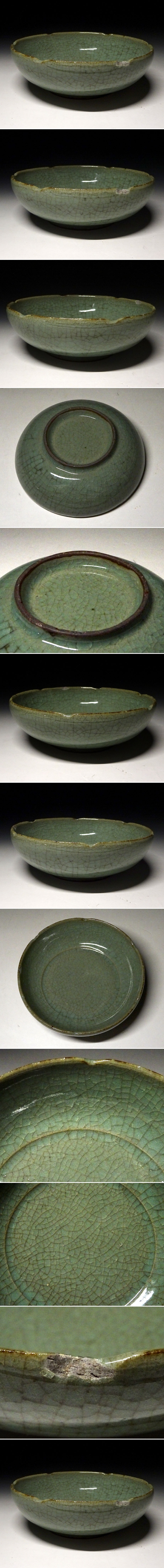 緑屋c■ 中国古玩 青磁 輪花 皿 鉢 龍泉窯 唐物 時代物 i9/10-6845/3-3#60 收藏
