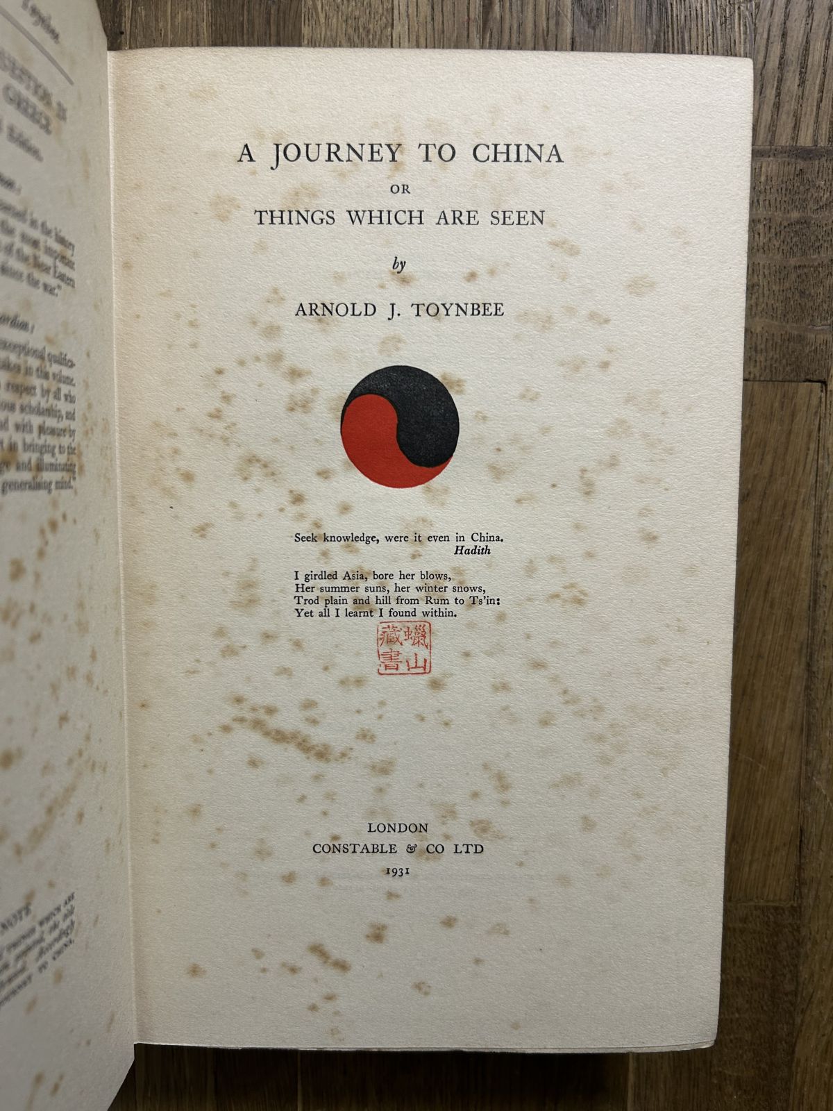 1931年 トインビー 『中国への旅』 Arnold J. Toynbee, A Journey to China; or Things Which Are Seen 英文洋書古書 收藏