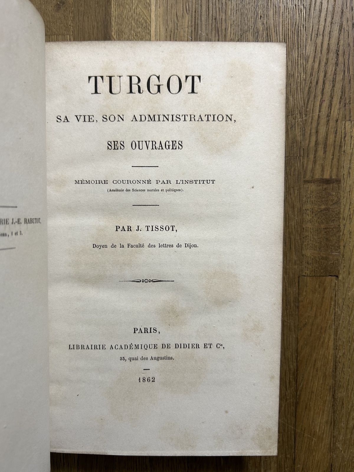 1862年 ティソ テュルゴー伝 J. Tissot, Turgot: Sa Vie, Son Administration, Ses Ouvrages フランス語洋書古書 收藏