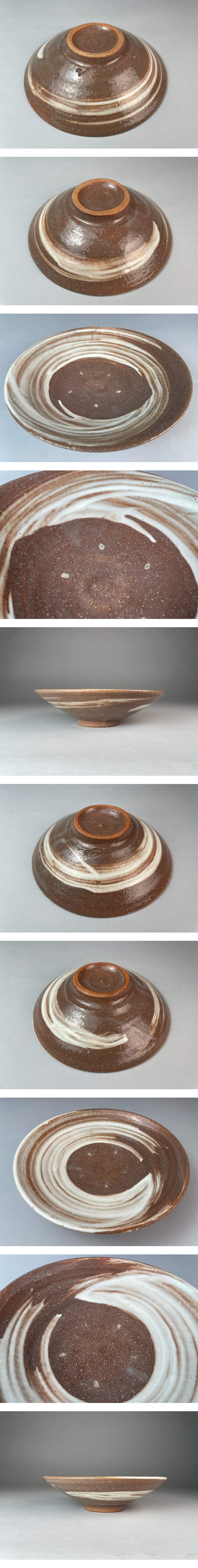 A748 和食器 刷毛目 在銘 渦模様 飴釉 平茶碗 2客 和皿 茶道具 和食器 ペア 民藝 伝統工芸 レトロ 收藏