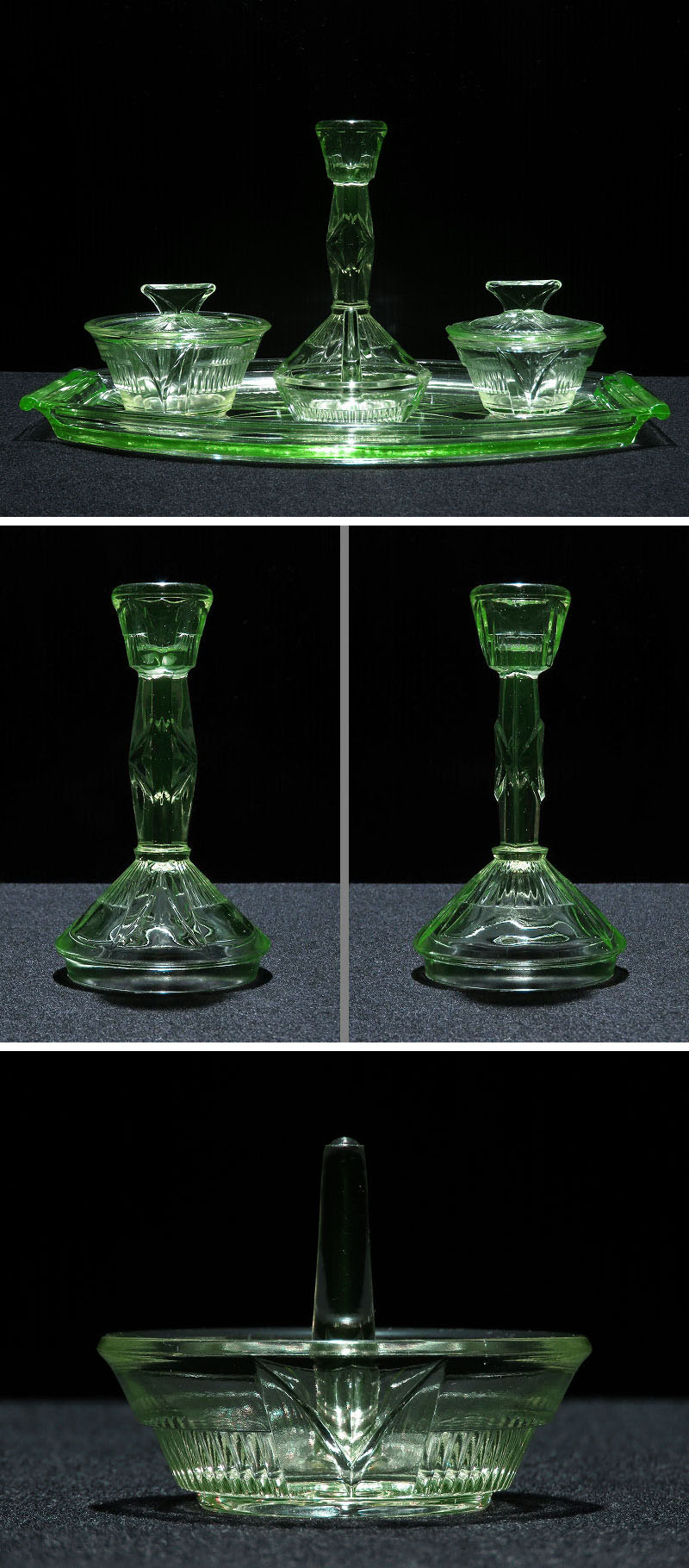 アールデコ様式のウランガラス製のドレッシングテーブルセット/オブジェ/飾り/ヴァセリンガラス/ディスプレイ/インテリア雑貨/AL-2463 收藏