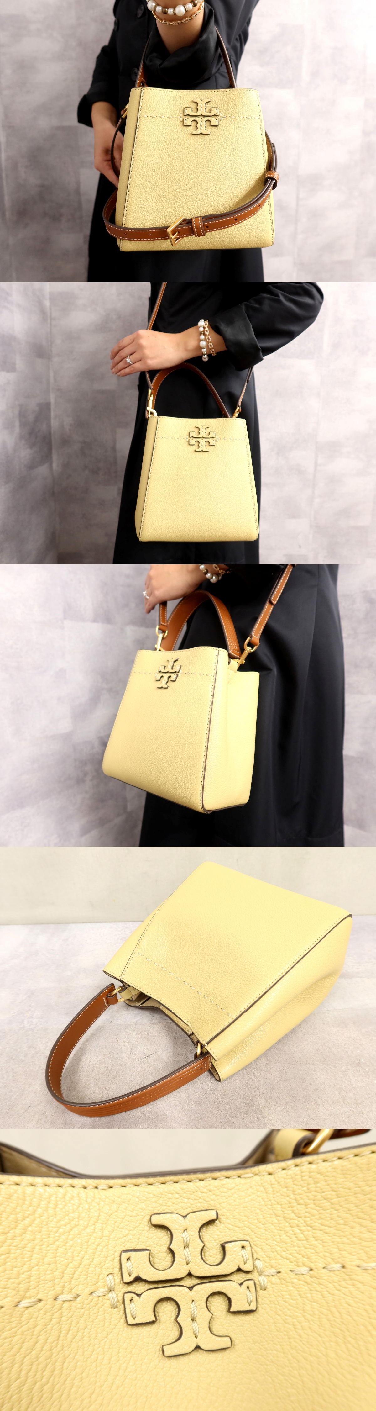 ●未使用●TORY BURCH トリーバーチ●マックグロー●カーフ レザー 本革●2way ハンド バッグ●ベージュ ブラウン●ゴールド金具●Js63388 收藏