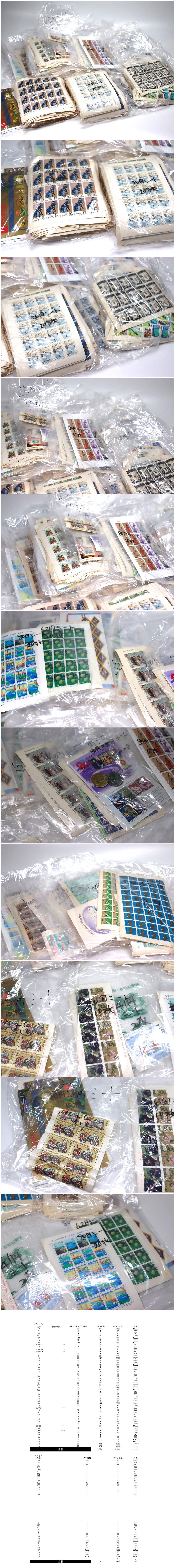 こちらの商品はタイトルで記載させて頂きました通り、全て未使用の切手となります。なお時代が経過しているお品の為、汚れべた付き、折れ等がある場合もございます。シートやバラを額面ごとに分け、それぞれのメモを記載し、額面を計算してまとめたものが、画像最下部にございます。額面計算にあたり、2名でダブルカウントを行いましたが、枚数が大量につき、多少の誤差がある可能性もありますので、予めご了承ください。