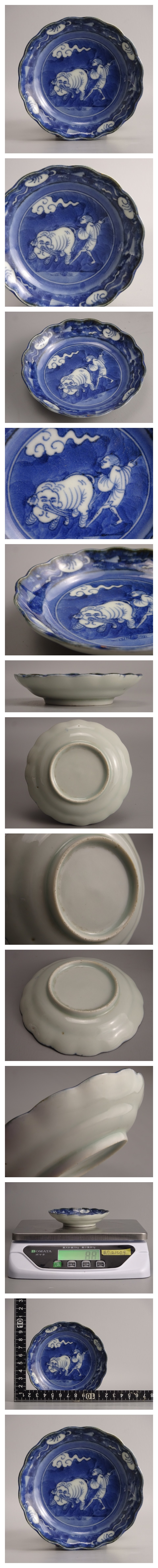 江戸時代 後期 古伊万里 染付 白抜き 象使いの図 輪花形 皿 小皿 希少 珍品 【飾皿 額皿 手塩皿 民藝 コレクター】 r7 1215 09 收藏