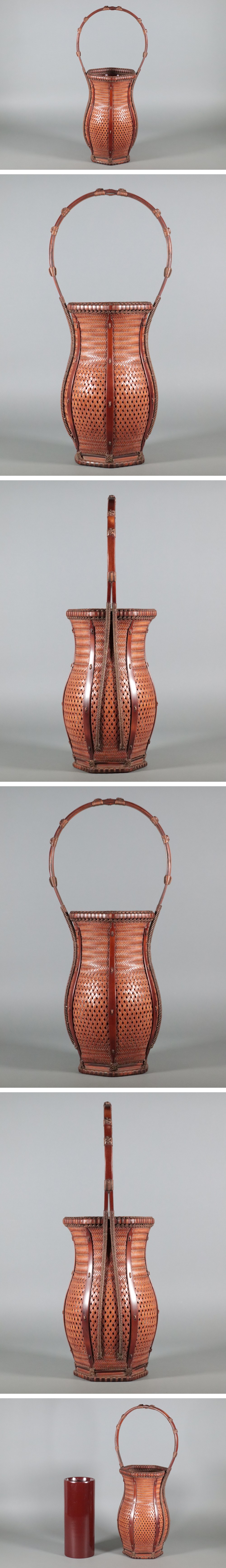 伝統工芸家 市原華雲斎 華雲斎 / 巻亀甲壺形花籃 / 極上 網代細工 竹編 花籠 花篭 竹籠 竹篭 花籃 / 花器 花瓶 花入 骨董品 / 高さ53cm 收藏