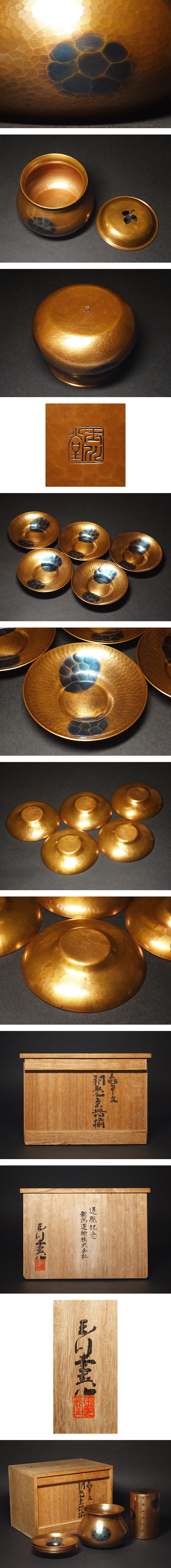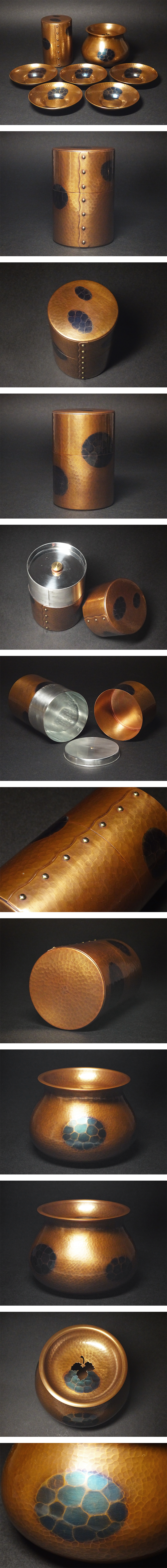 慶應◆【玉川堂】製 亀甲文銅製茶器揃 茶筒・建水・茶托 鎚起銅器 共箱 煎茶道具 收藏