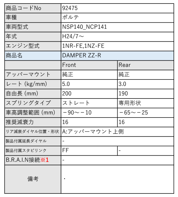 [BLITZ_ZZ-R]NSP140_NCP141 ポルテ(H24/7~)用ブリッツ車高調[No:92475] 收藏
