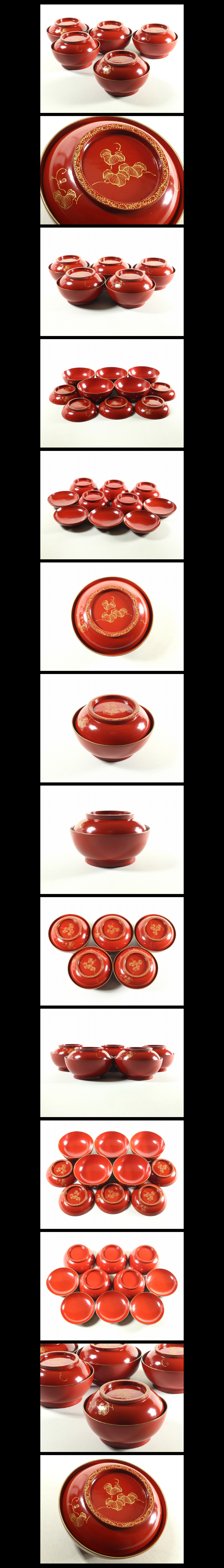 ●c137●【輪島塗沈金菓子椀5客/縁唐草文 朱 布着堅地/吸物椀煮物椀】検お茶会茶懐石煎茶道具●西瓜●