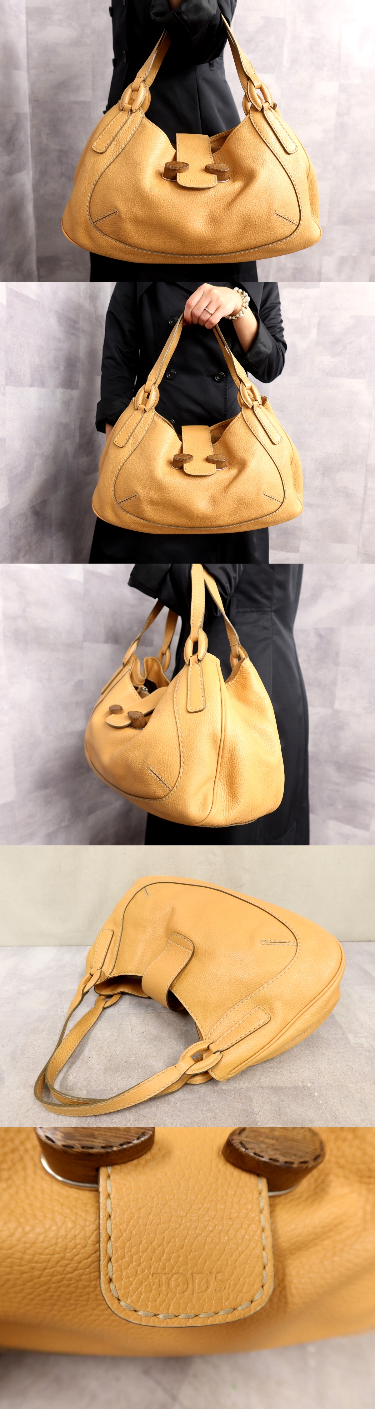 ●超美品●TODS トッズ●ロゴ型押し●カーフ レザー 本革●ハンド バッグ●ペールオレンジ●シルバー金具●B5 収納 書類 かばん●Js63932 收藏