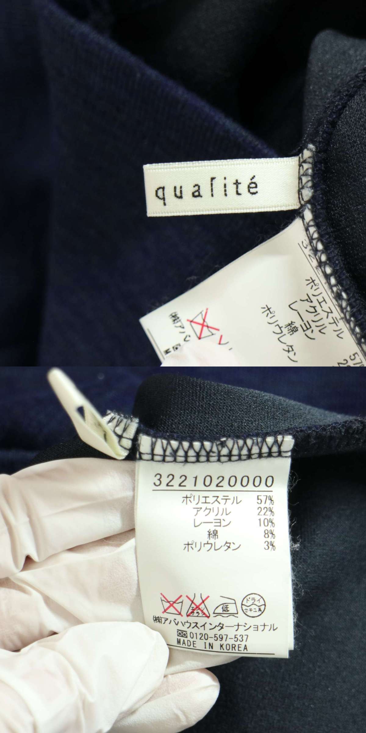 qualite カリテ アバハウス 秋冬 ストレッチ★ タートルネック カットソー ロンTシャツ Sz.F レディース ネイビー 收藏