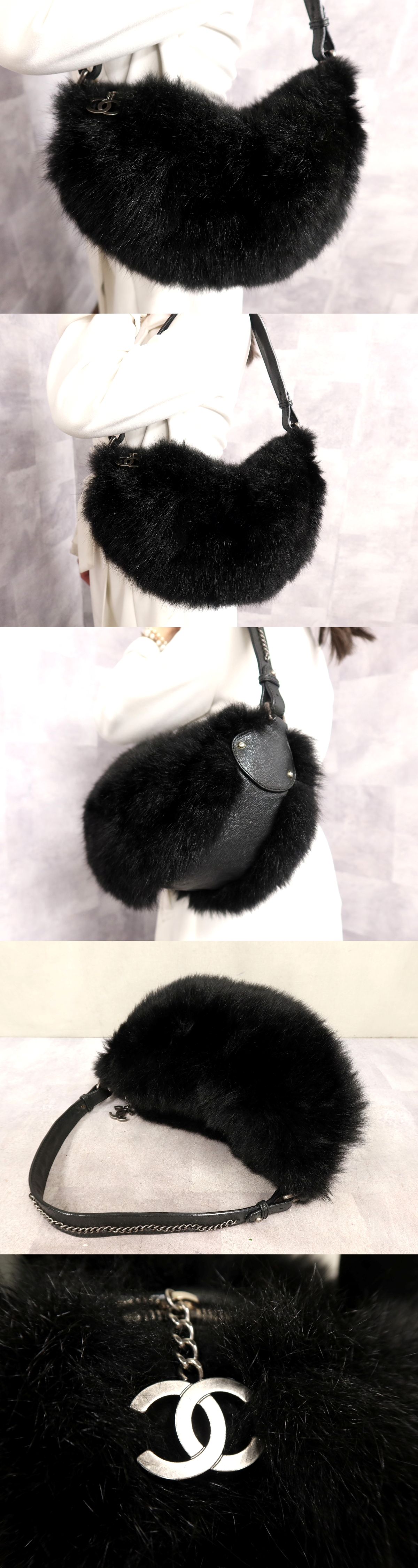 ●超美品●CHANEL シャネル●ココマーク●ファー キャビアスキン レザー 本革●チェーン ワンショルダー バッグ●黒●肩掛け●Js64058 收藏