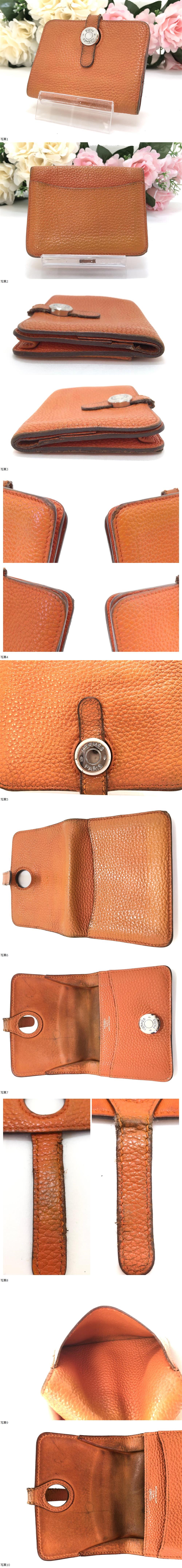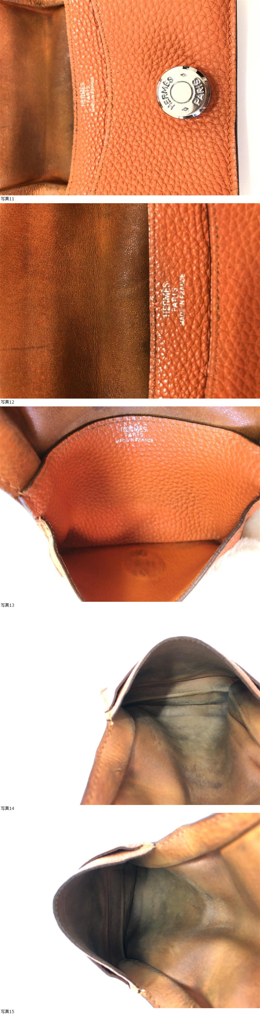 1円スタート エルメス HERMES ドゴン カードケース コインケース オレンジ レザー 小銭入れ クリーニング済み 收藏