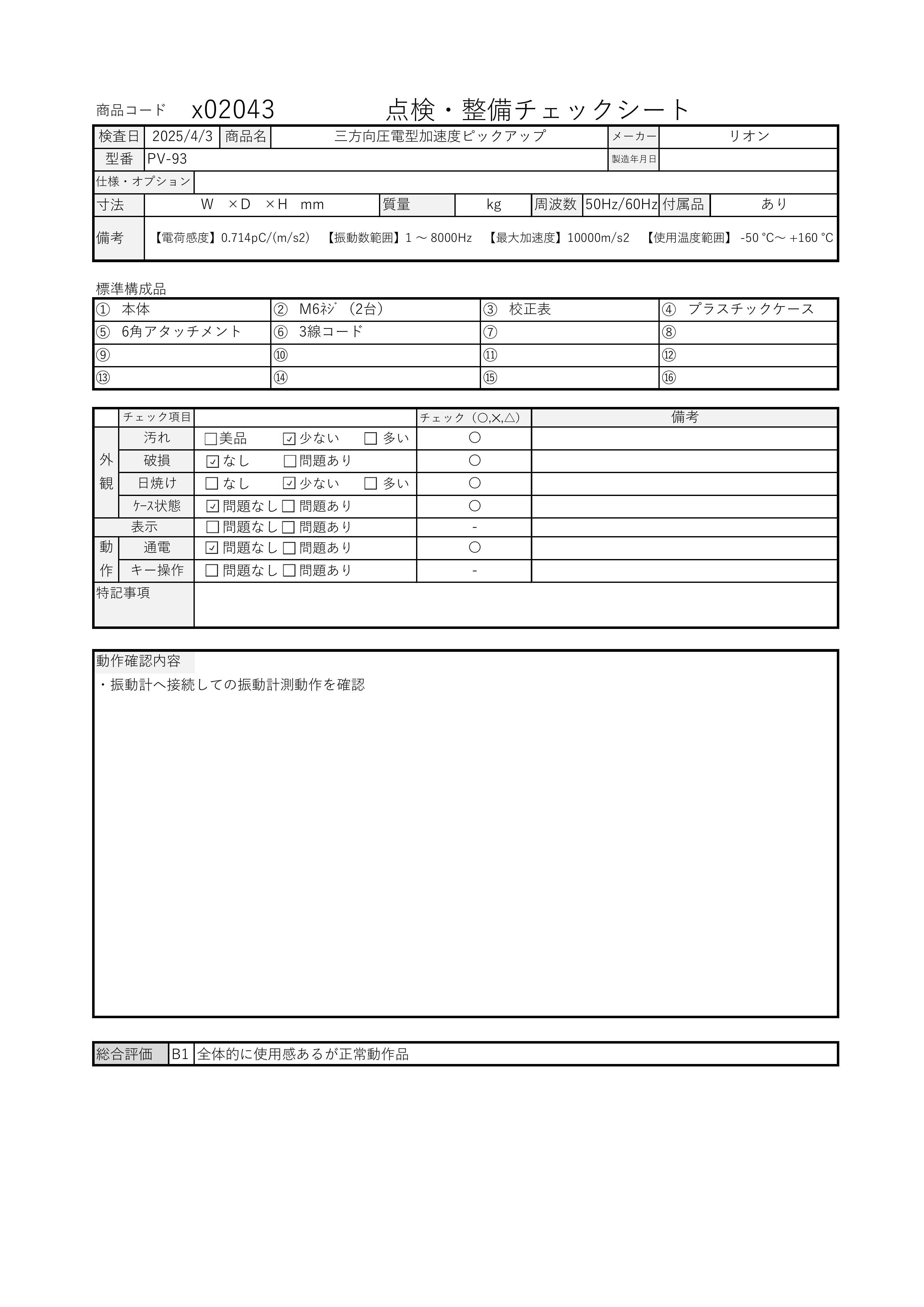 【中古】三方向圧電型加速度ピックアップ PV93 PV-93 リオン RION x02043 ★送料無料★[騒音測定器/振動測定器/粉塵測定器] 收藏