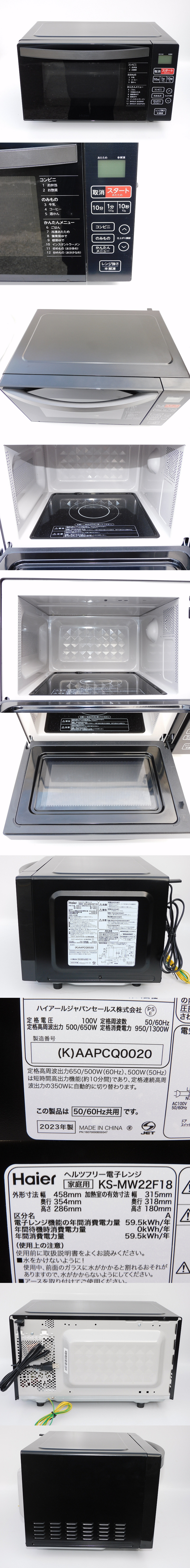 【g0962/かなり綺麗/送料無料】ハイアール 電子レンジ KS-MW22F18 2023年 ブラック ヘルツフリー 中古 清掃済み 美品 正常動作品 收藏