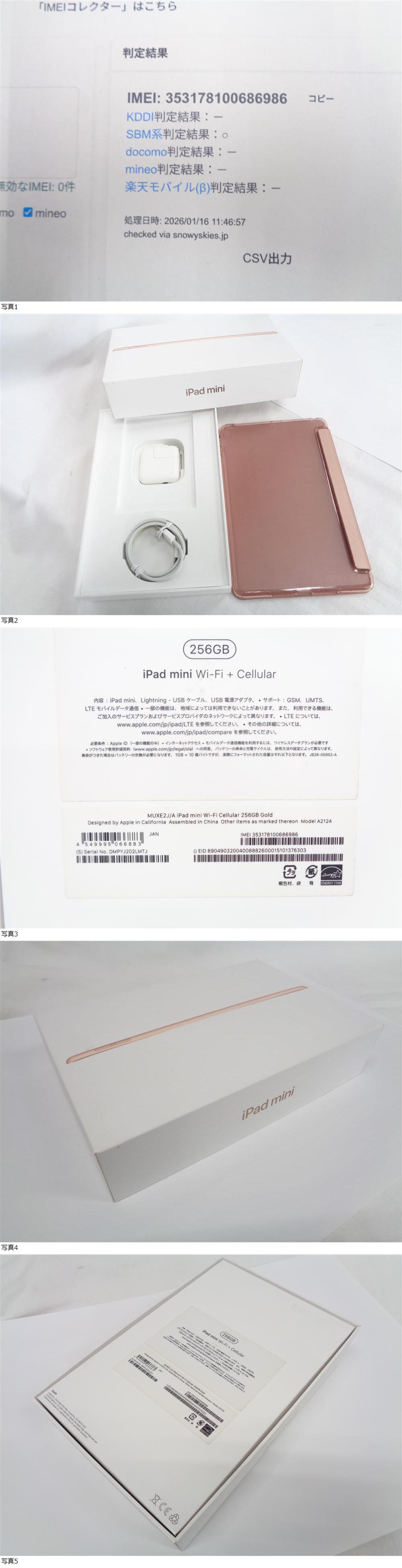 ★極美 Apple iPad mini 7.9インチ 第5世代 Wi-Fi+Cellular 256GB GOLD MUXE2J/A モデルA2124 判定〇☆彡 收藏