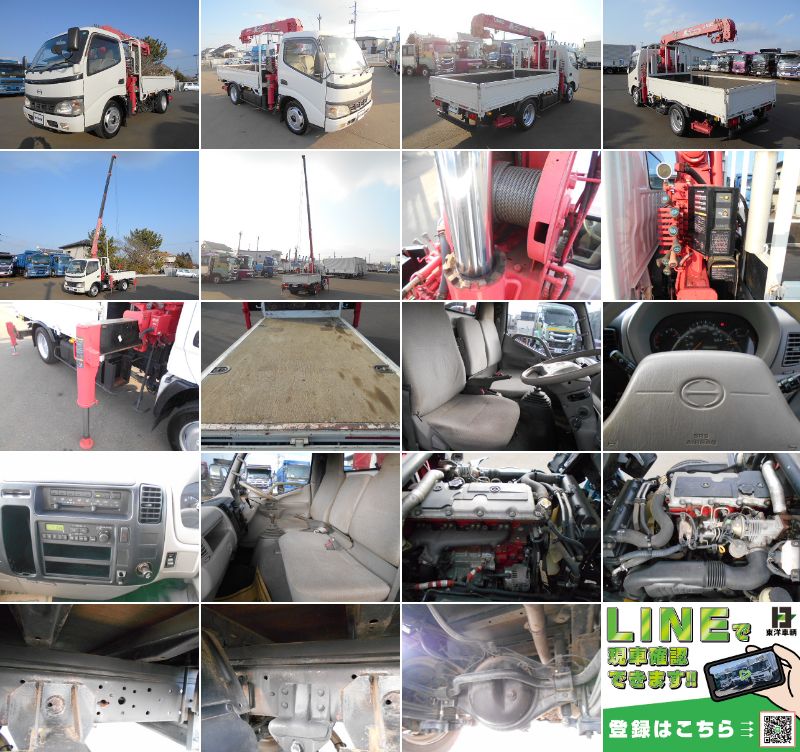 | [クレーン付 平ボディ] H15 デュトロ 4段ラジコン セミロングボディ リアジャッキ付 走行12万km 車検付 | |||