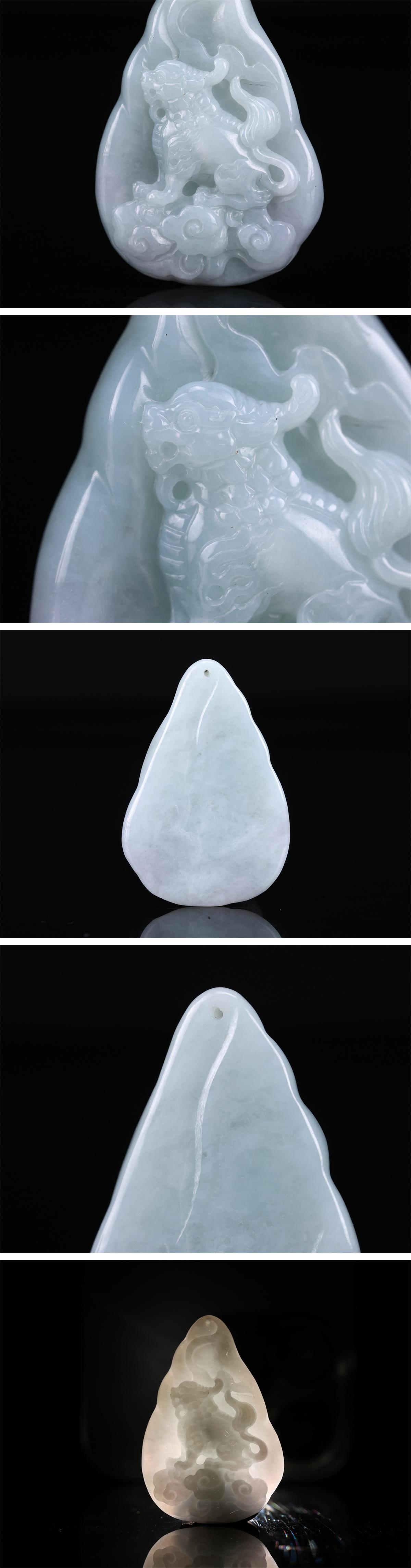 【吉】IB409 唐物 【本翡・翠製】 細工 ペンダントトップ 幅4.2×2.9㎝/本物保証! 收藏