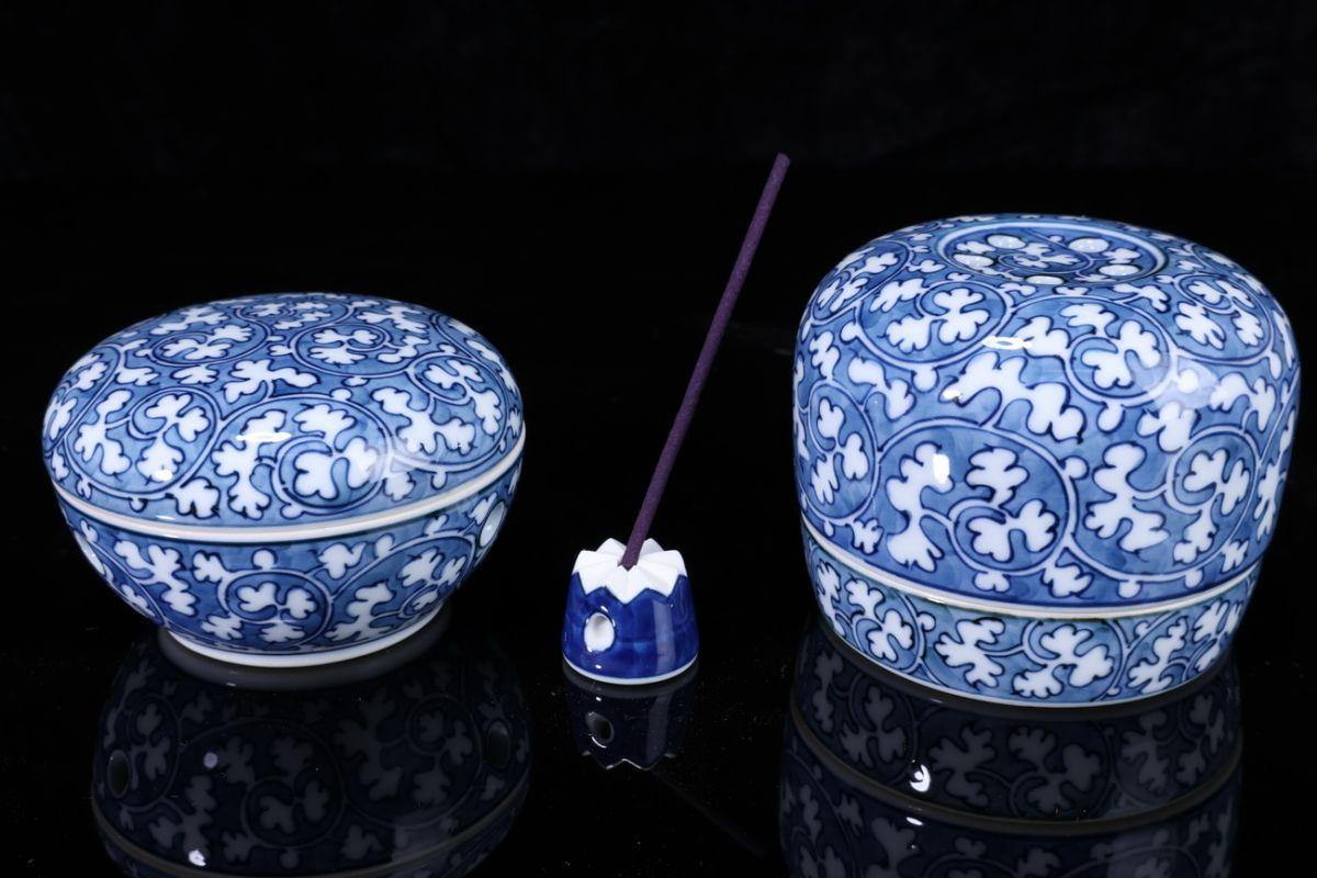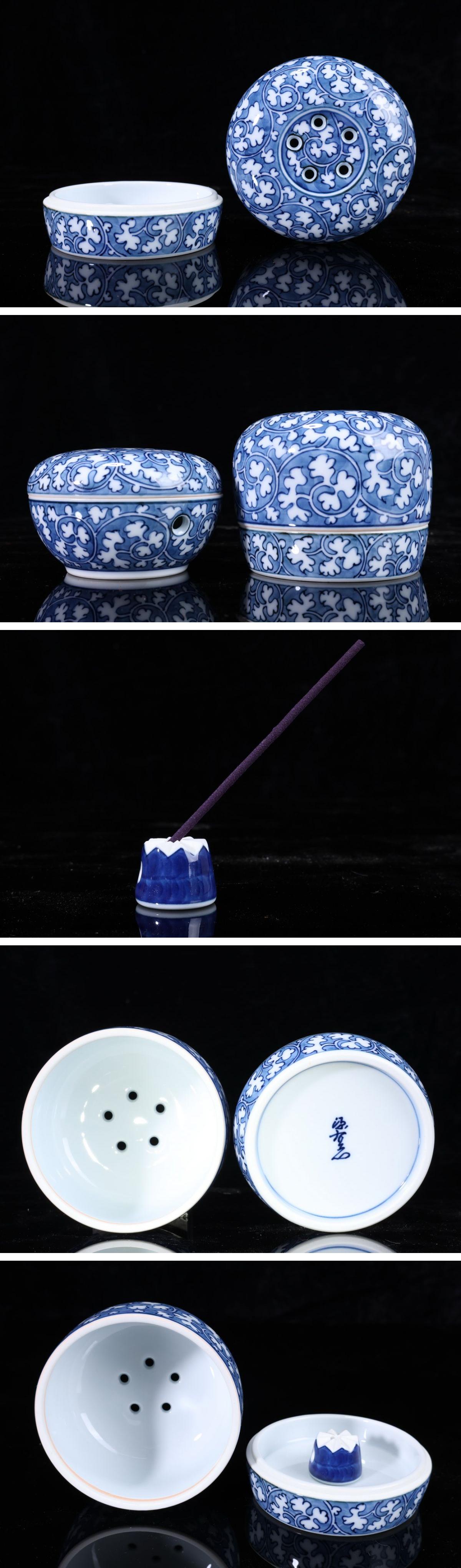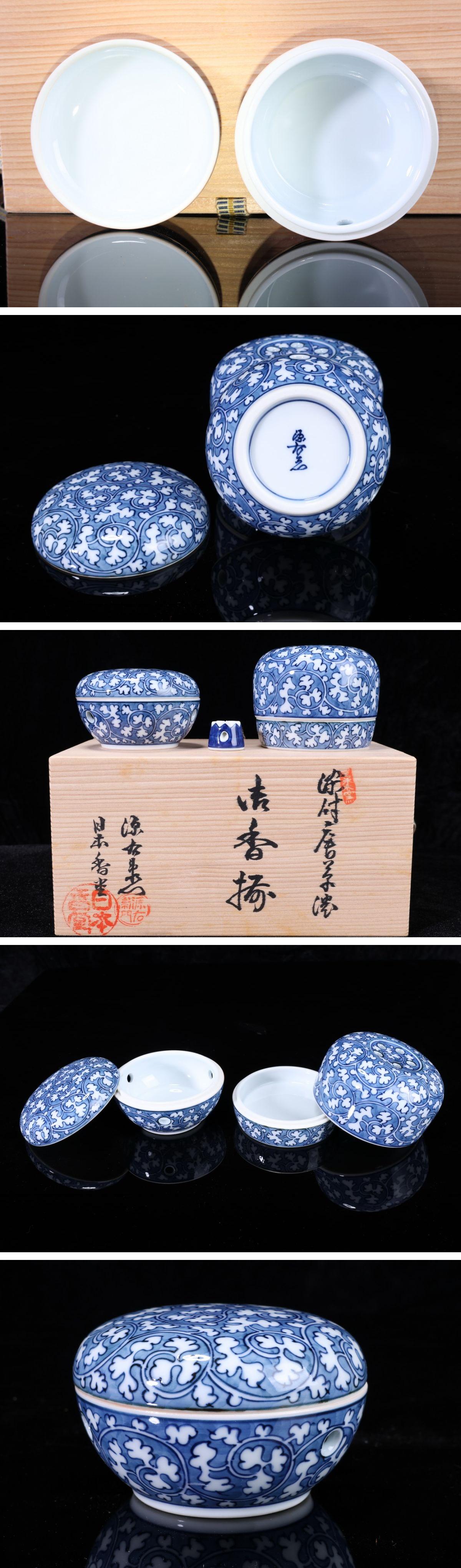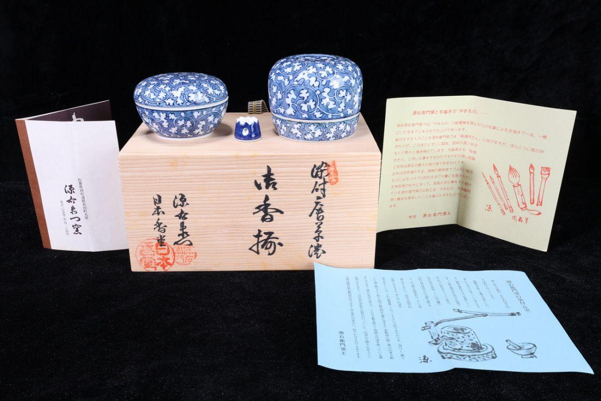 【珍品堂】1円から 有田焼 源右衛門 染付唐草絵 香合 共箱 香道具 時代物 古美術 骨董品 AC39AZ-J 收藏