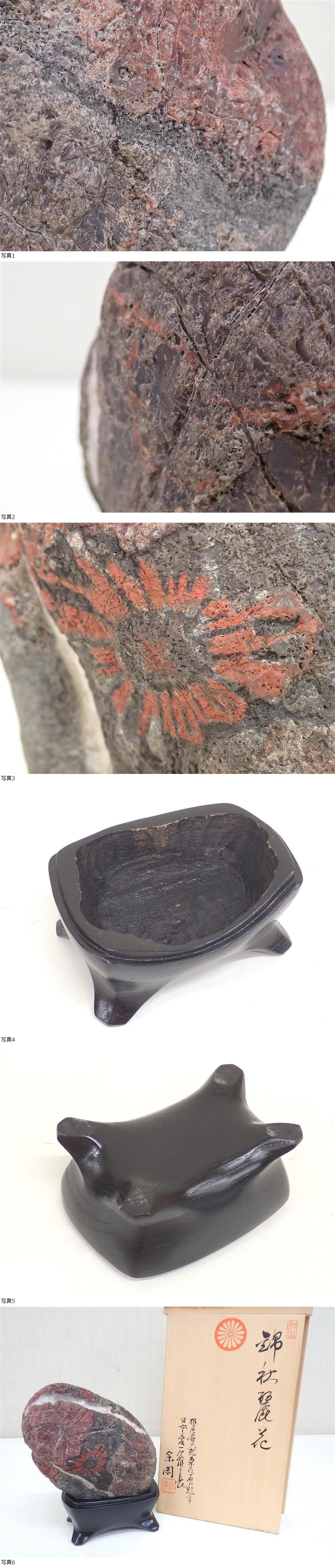 | 日本愛石館館長 小森宗閑 根尾谷産菊花石 紅花碧秋香 錦社麗花 重さ1568g 唐木台 横13cm 鑑賞石 水石 盆石 飾石 庭石 菊花石 | ||||