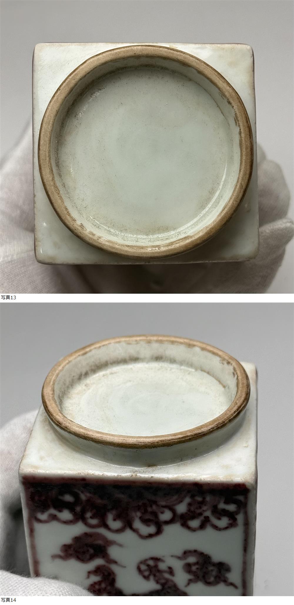 X-中国古美術 時代物 赤絵 釉里紅 花瓶 花入 花生 花器 四方形 龍図 共箱付 在銘 大明宣徳年製 唐物 陶磁器 中国古玩 骨董品 收藏