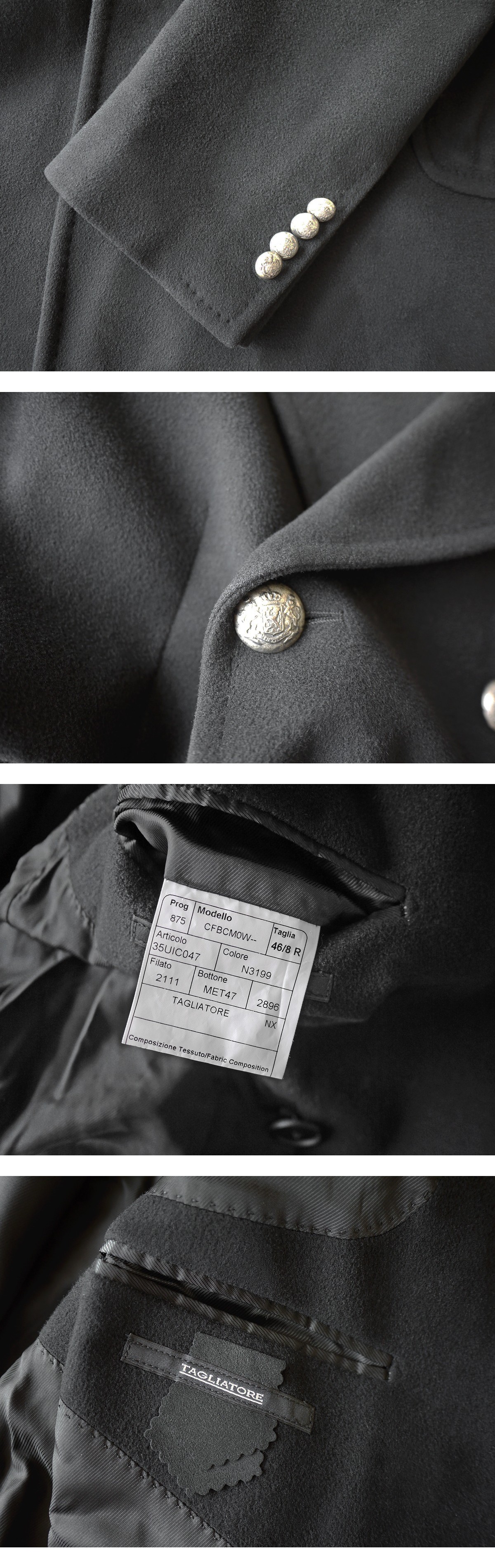 タリアトーレのウールメルトンダブルブレストコートでございます。TAGLIATOREはバーニーズや伊勢丹等で取り扱われる、クラシックなエレガンスを保ちながらモダンな雰囲気を持ち合わせた、世界中のファッショニスタに長く愛されるサルトリアブランドです。