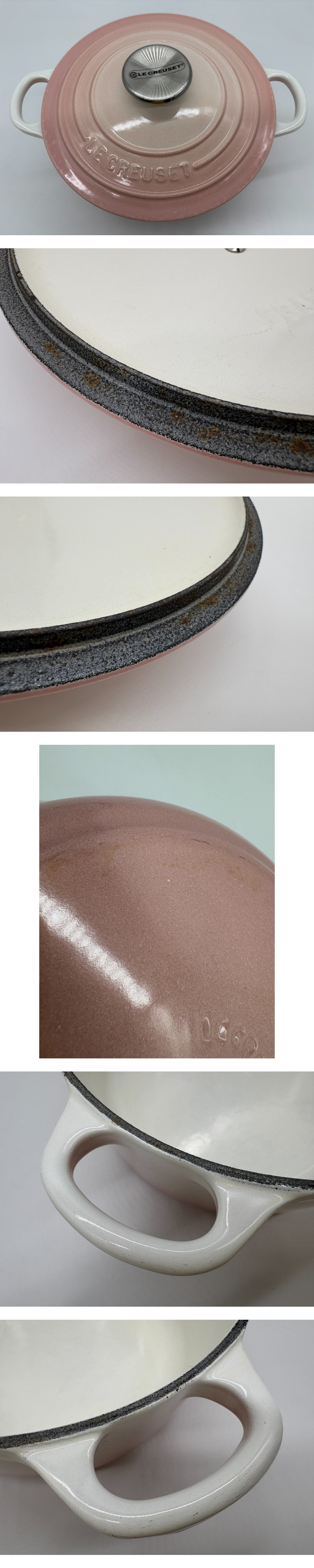 蓋の表と裏淵、鍋底の裏に少し目立つキズ・汚れがございます。(画像参照)