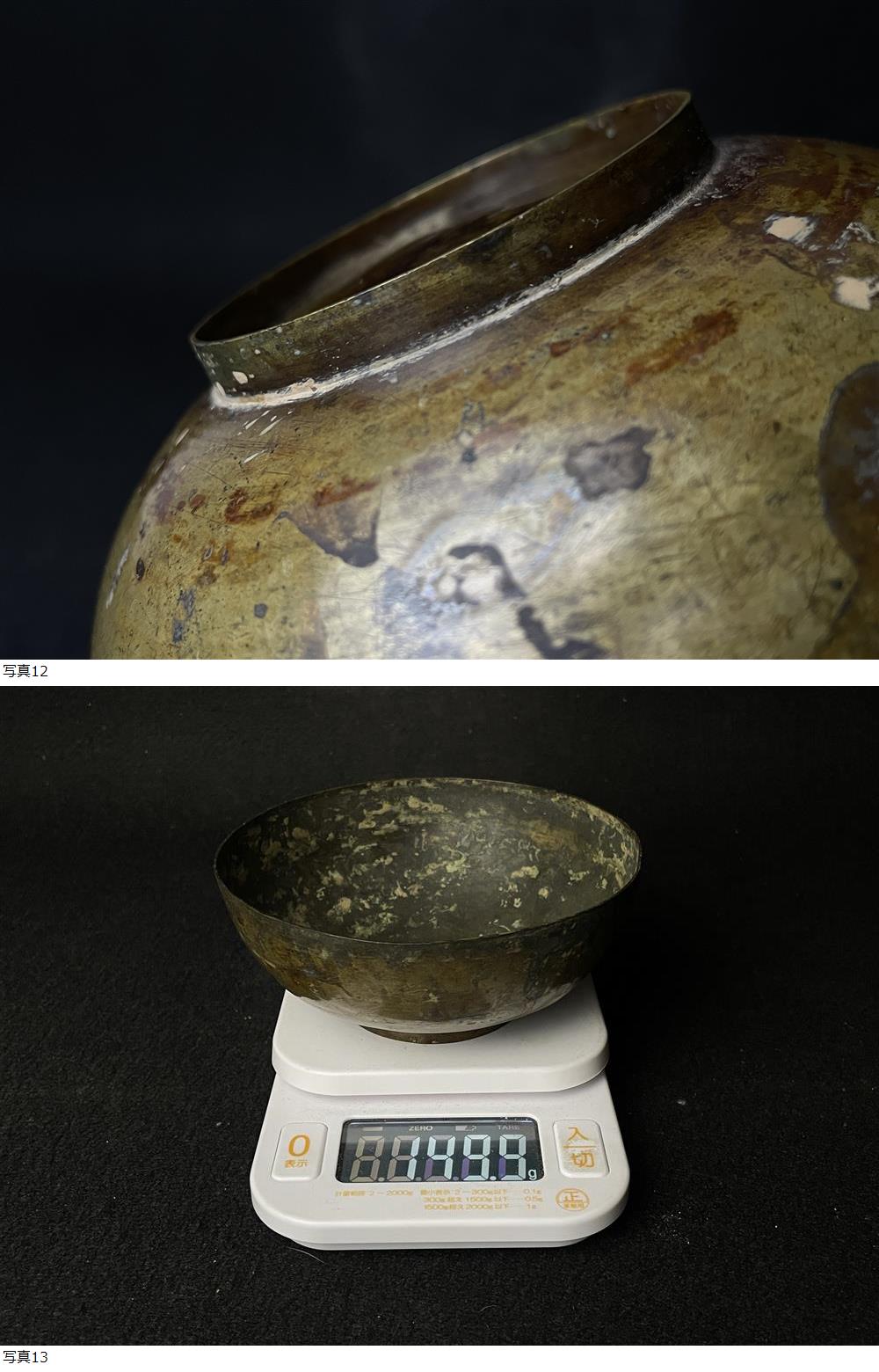 | 仏教美術 古銅 銅鋺(まり) 時代 六器 響銅鋺 仏器 密報法具 149.9g |