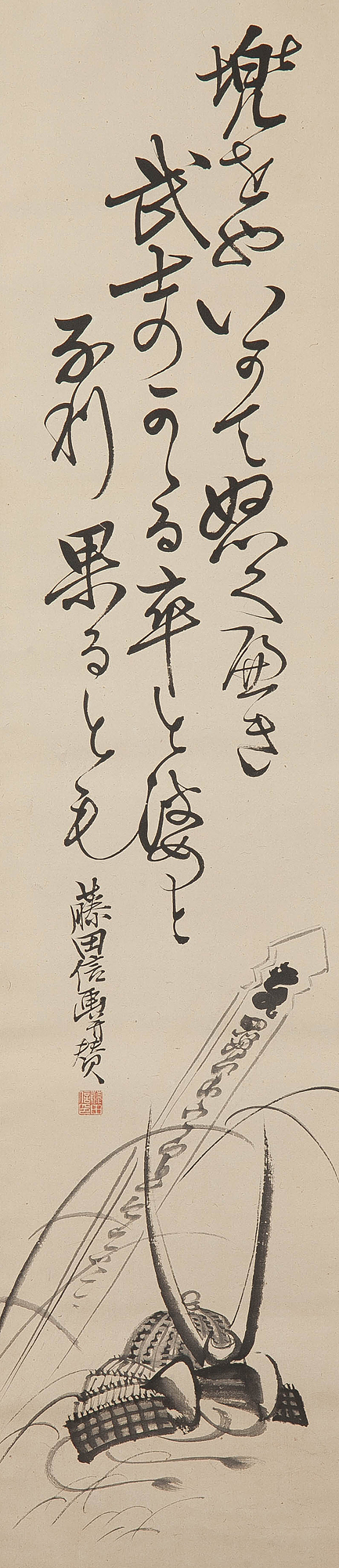 【五】藤田小四郎 『兜を也・・・』 紙本 墨 掛軸 箱付 真作 / 幕末水戸藩の尊攘志士 收藏