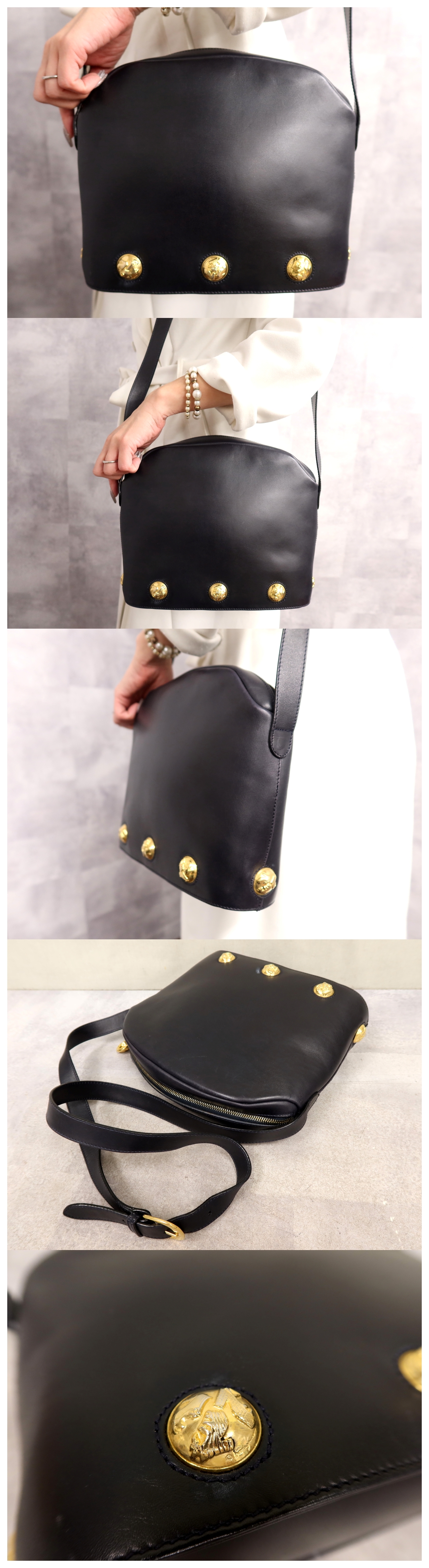 ●超美品●Salvatore Ferragamo フェラガモ●ヒールモチーフ●カーフ レザー 本革●ショルダー バッグ●黒●ゴールド金具●Js64499 收藏