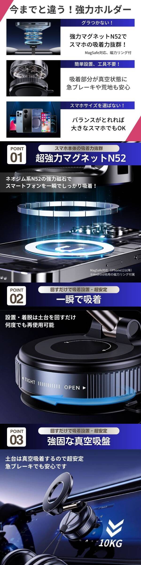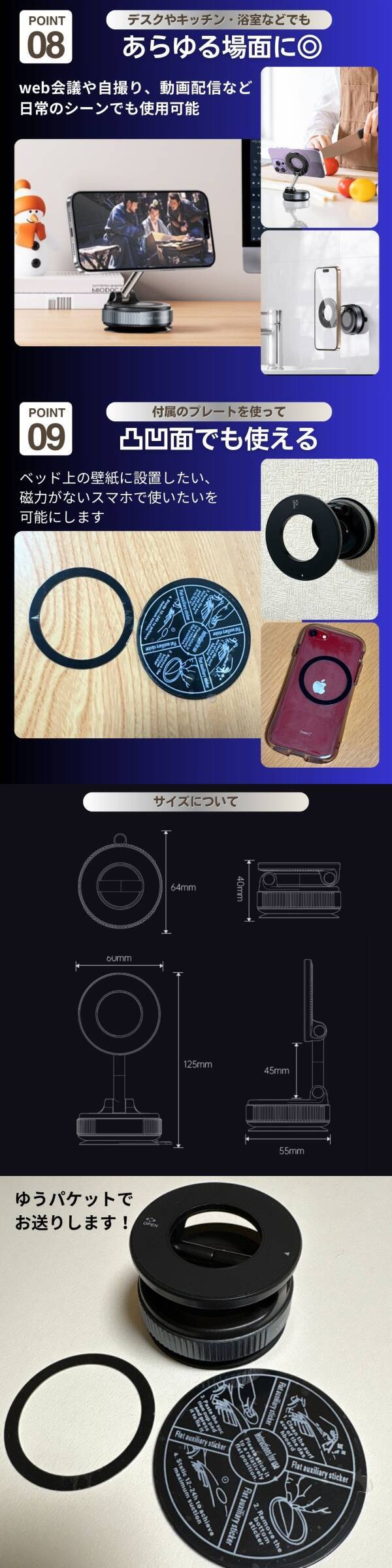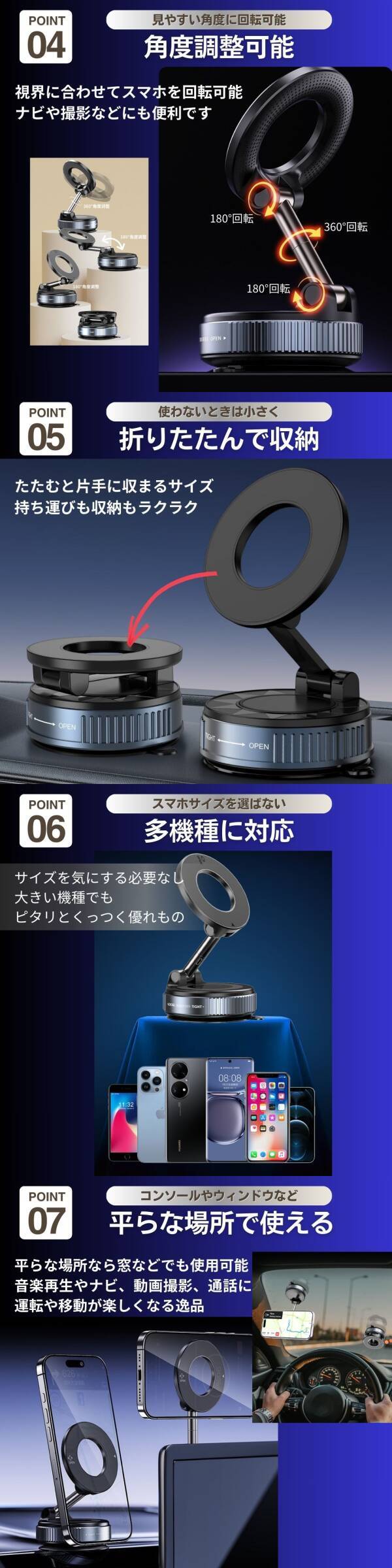 スマホホルダー スマホスタンド マグネット 磁石 車載ホルダー 吸盤 magsafe対応 折りたたみ 真空吸着 360° 角度調整 iPhone Android 携帯 收藏