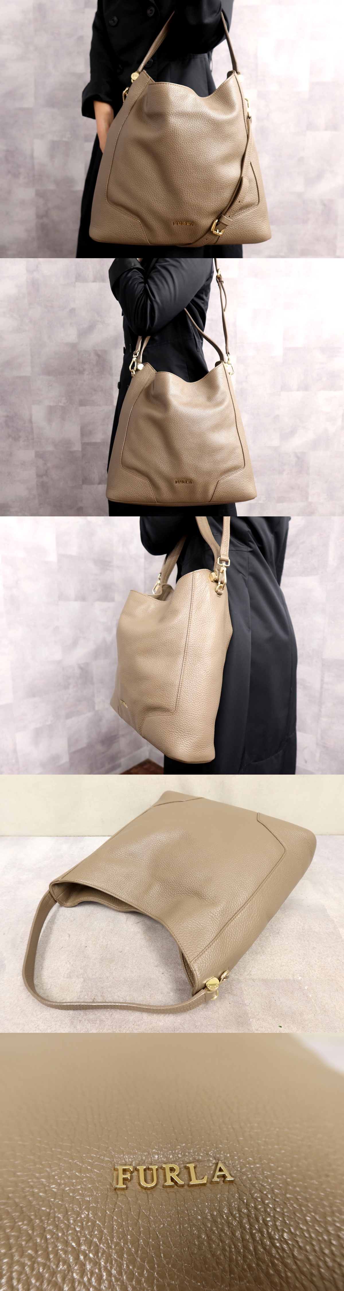 ●超美品●FURLA フルラ●ロゴ金具●カーフ レザー 本革●2way ハンド バッグ●グレージュ●ゴールド金具●肩掛け●A4 書類 収納●Js64587 收藏