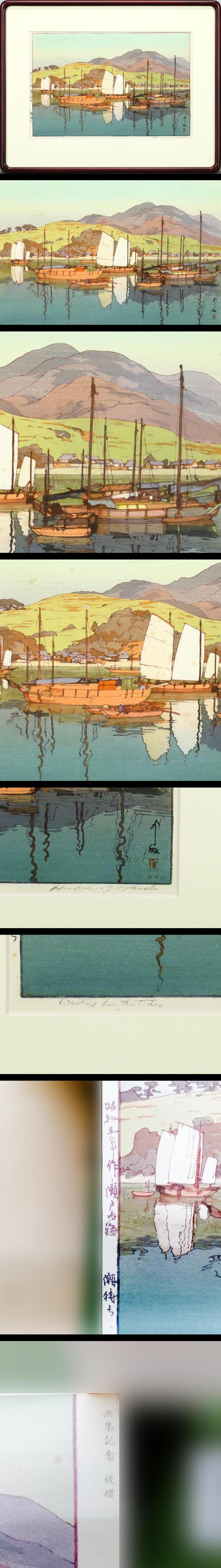 【真作】【WISH】吉田博「瀬戸内海 潮待ち」木版画 1930年作 直筆サイン ◆貴重作 〇洋風画壇の長老 木版画巨匠 近年再評価 #26012208 收藏
