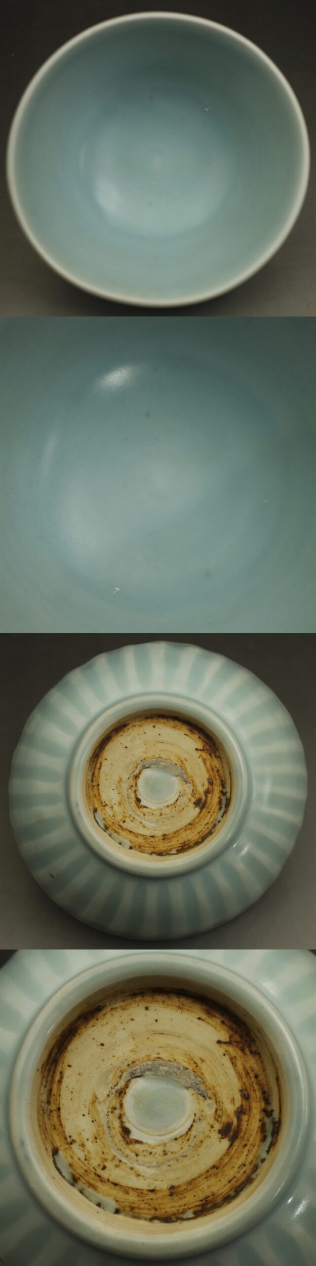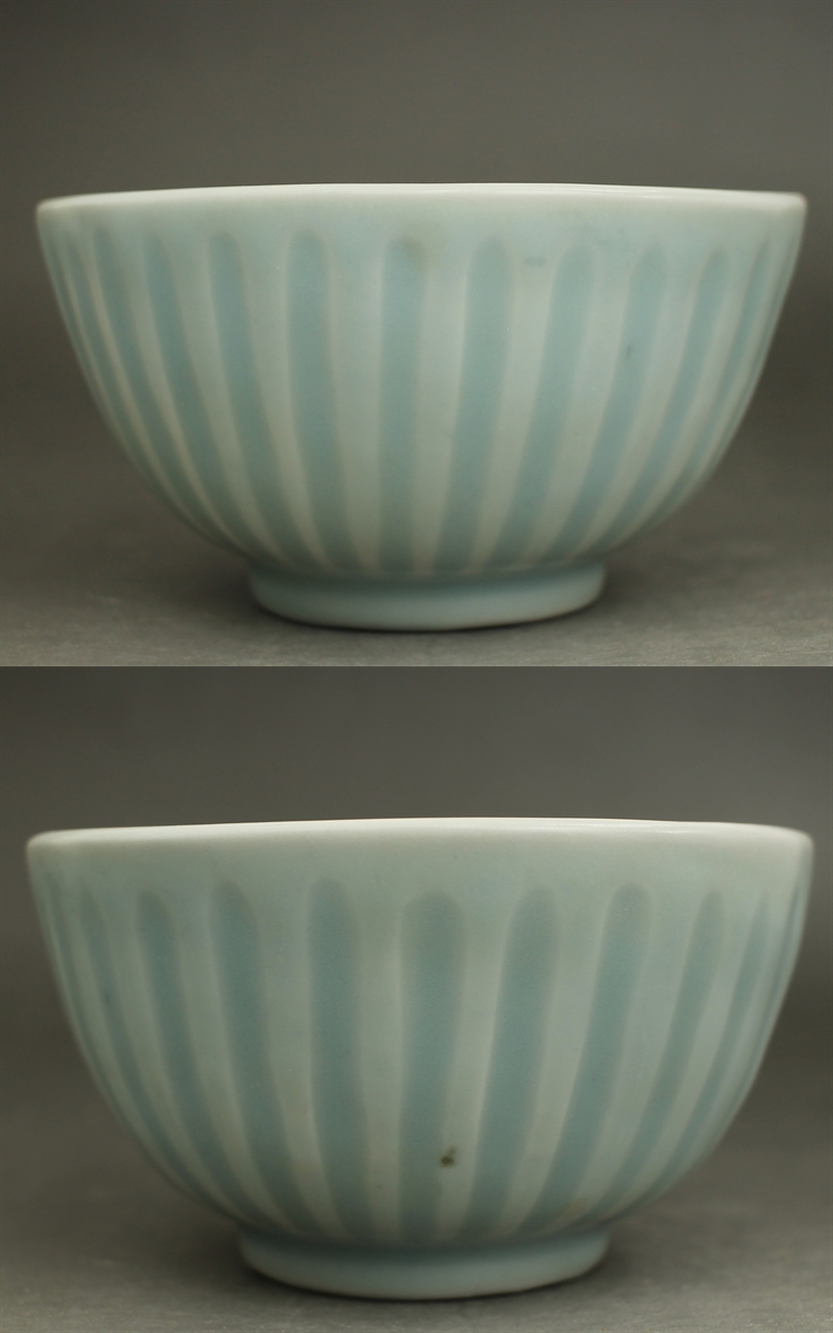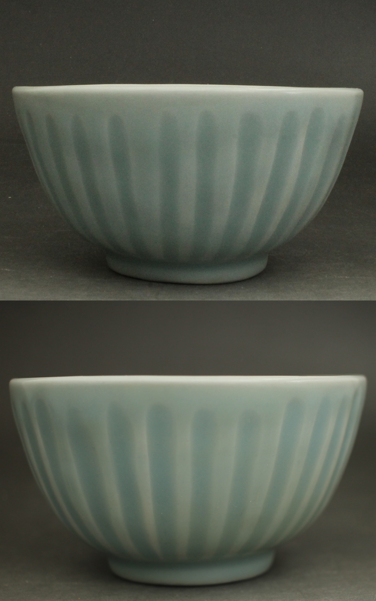 D714B 青磁 鎬蓮弁文 茶碗 径13.5㎝ 高さ7.3㎝ 紛青釉 龍泉窯? 中国陶器複製品?茶道具 蔵出し 古玩 珍蔵 收藏